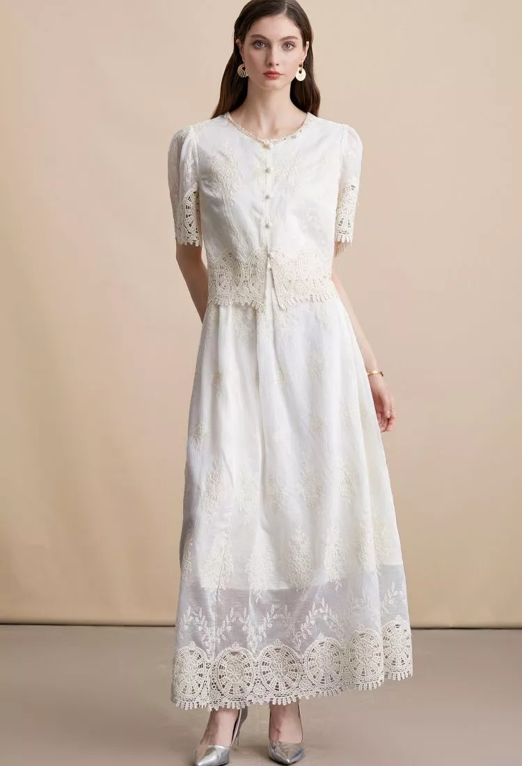 Vestito Albicocca Ricamato 2 Pezzi Gilet E Gonna Cerimonia Romantica CF54183