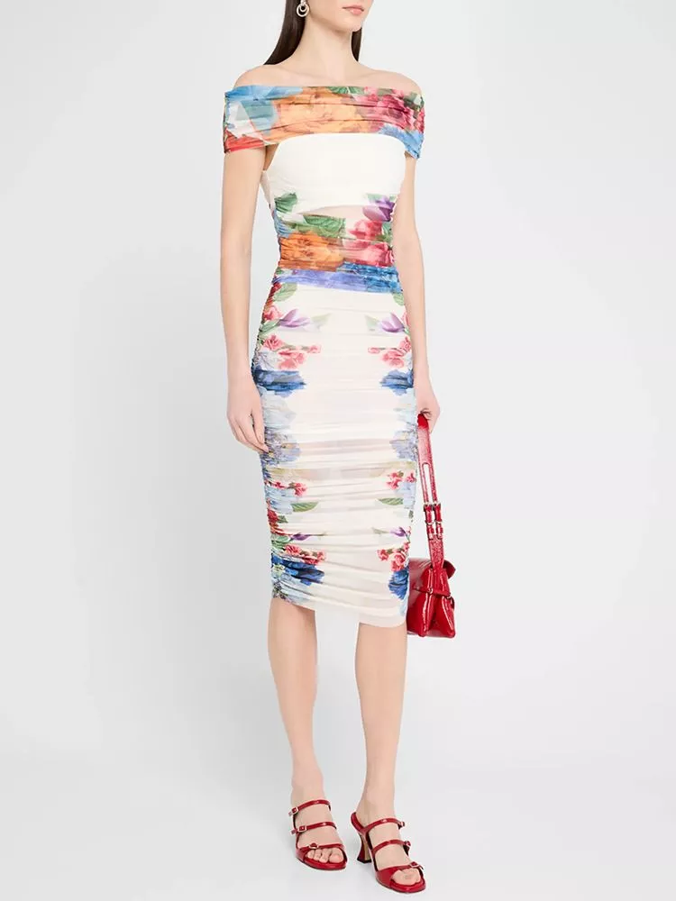 Completo Elegante Floreale Top Bardot E Gonna Longuette Cerimonia CF66782