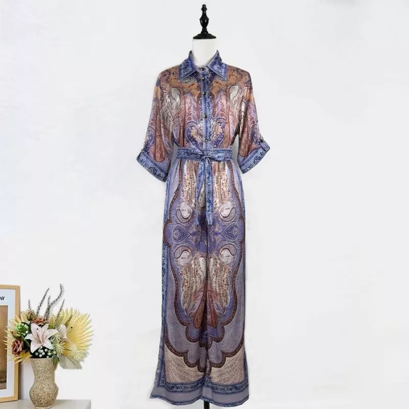 Set Camicia E Pantaloni Stampa Paisley Elegante Look Raffinato Chic CF59664