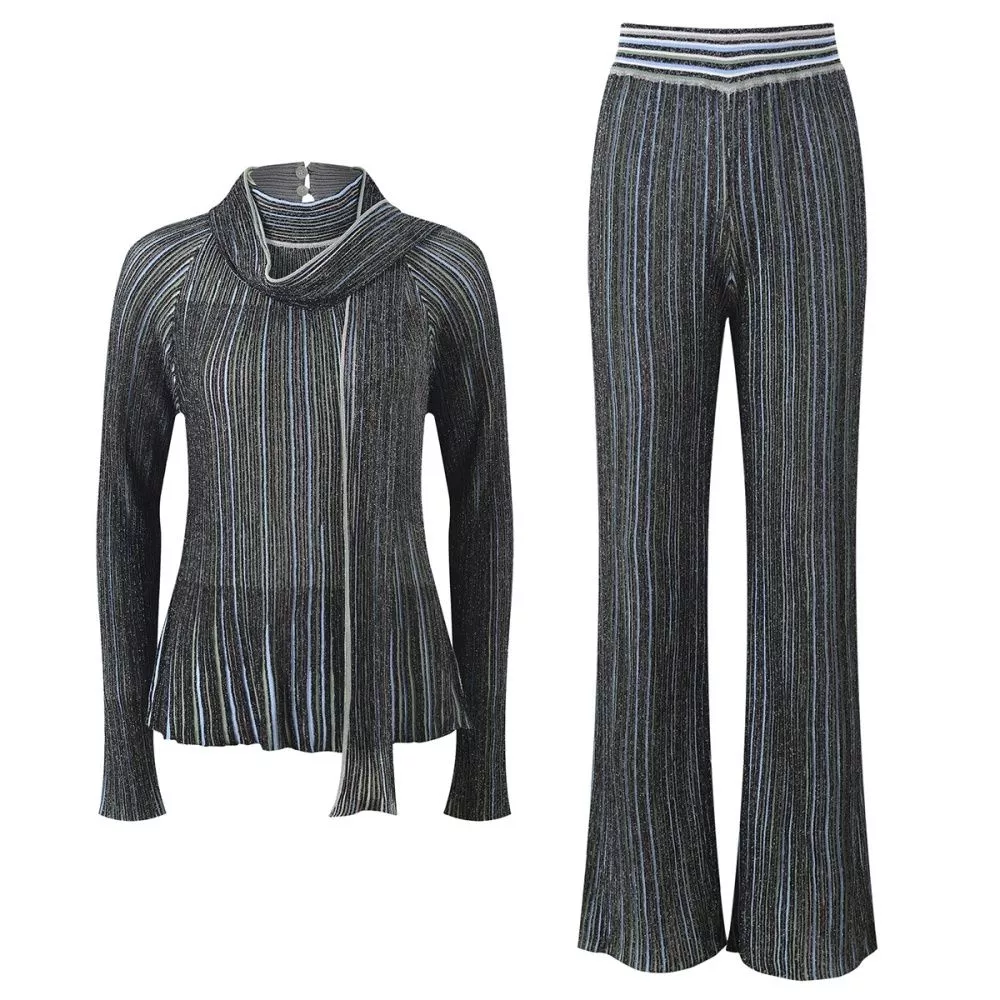 Completo Donna In Maglia A Righe Verticali Con Pantaloni A Gamba Larga CF61452