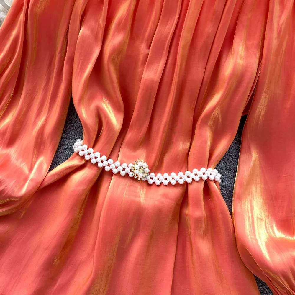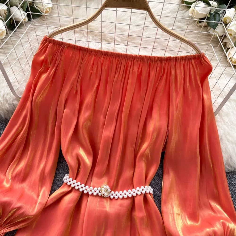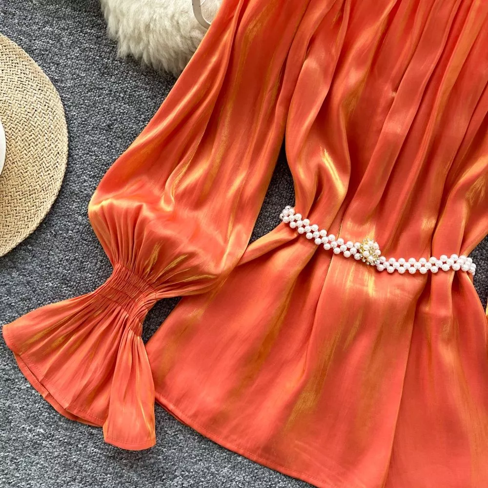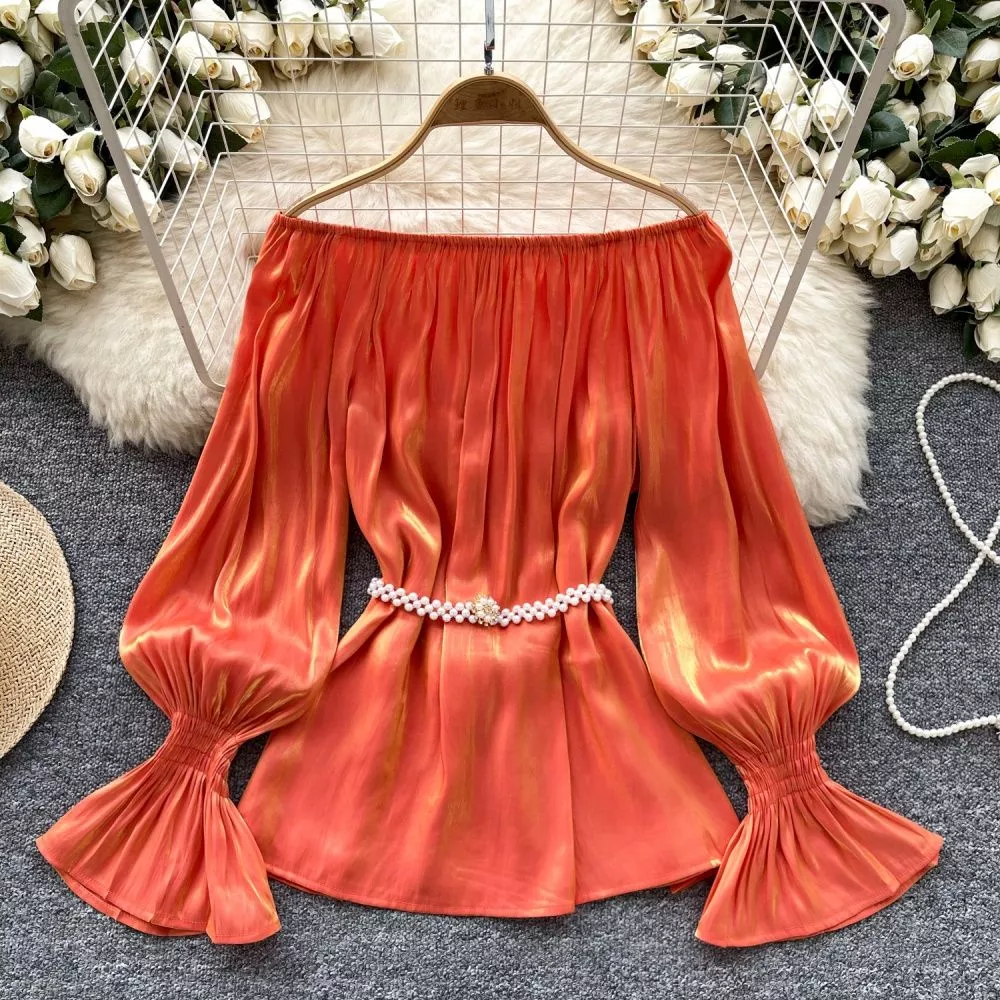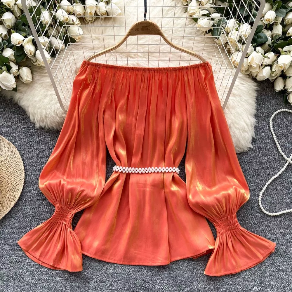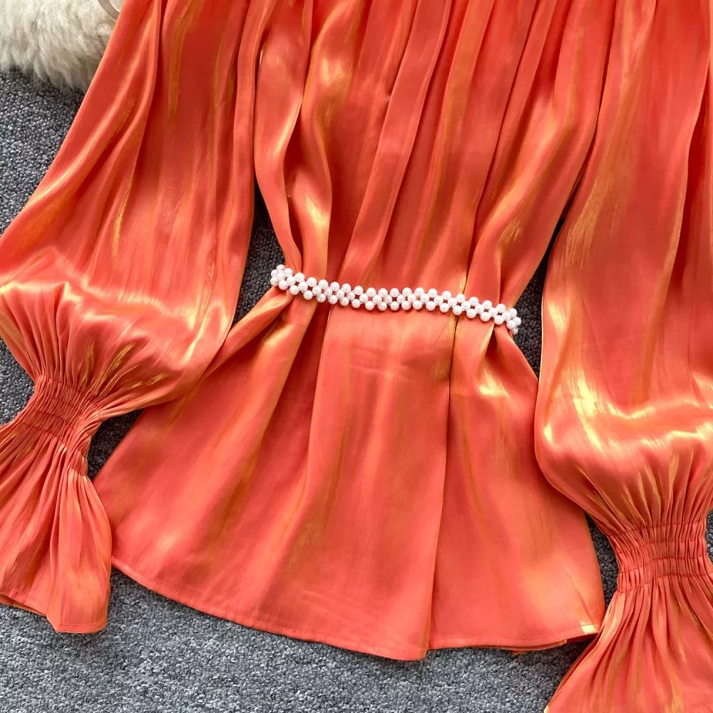 Camicia Maglia Blusa Donna Camicetta Arancione Morbida Raso 37158