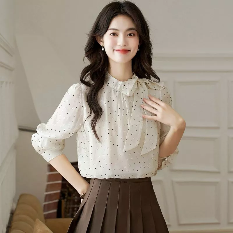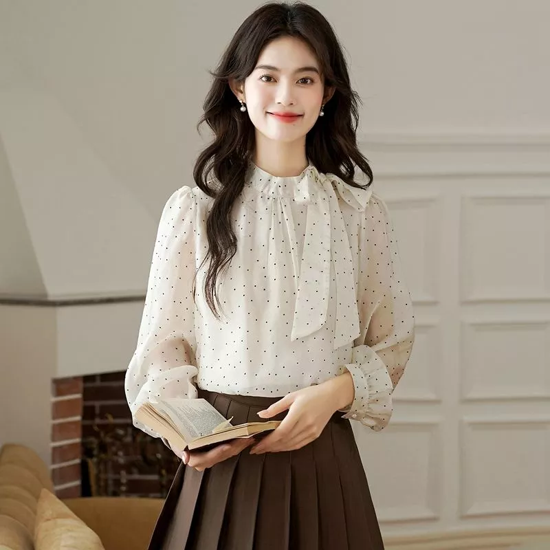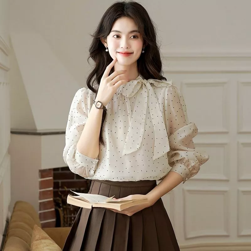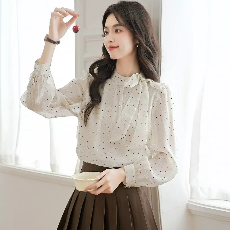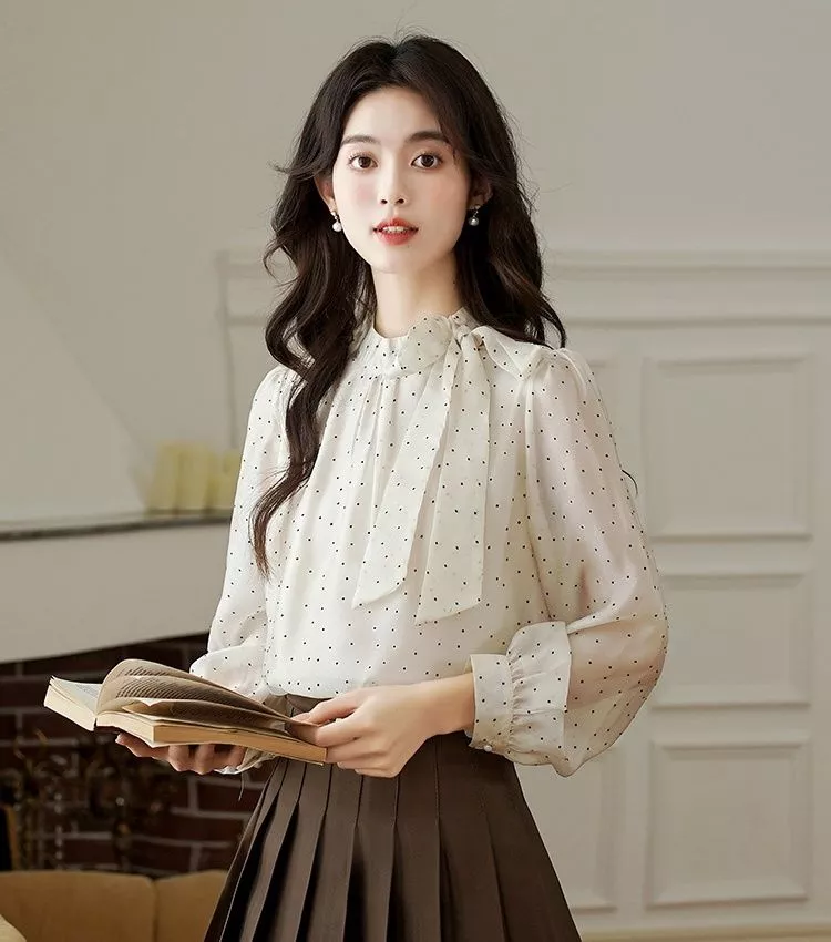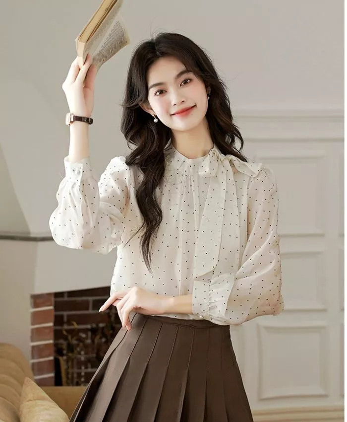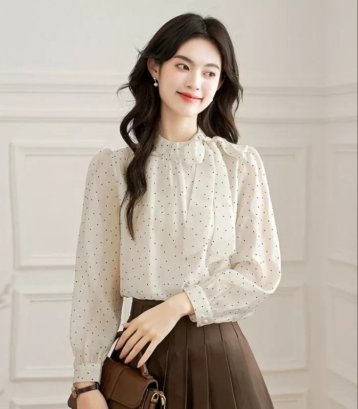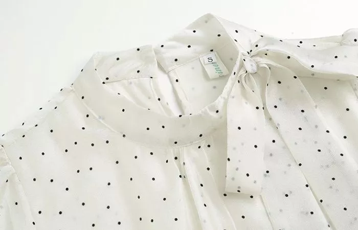 Camicia Maglia Blusa Donna Camicetta Bianco Beige Panna Raso Maniche 23186