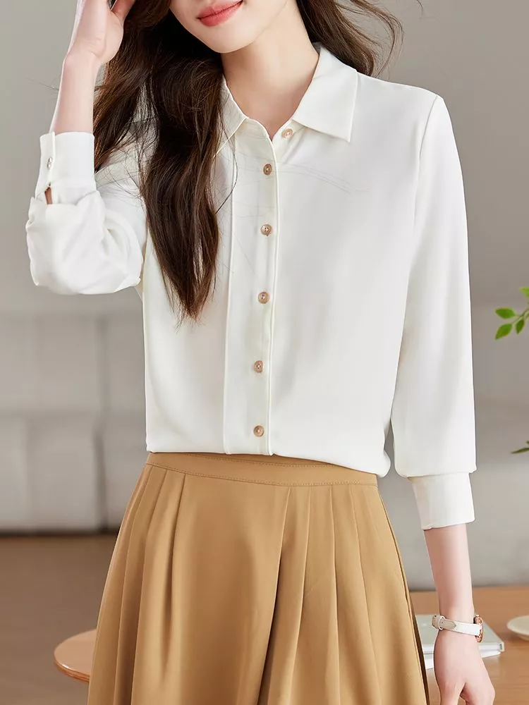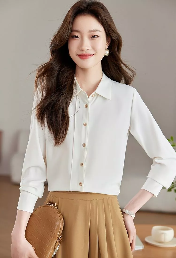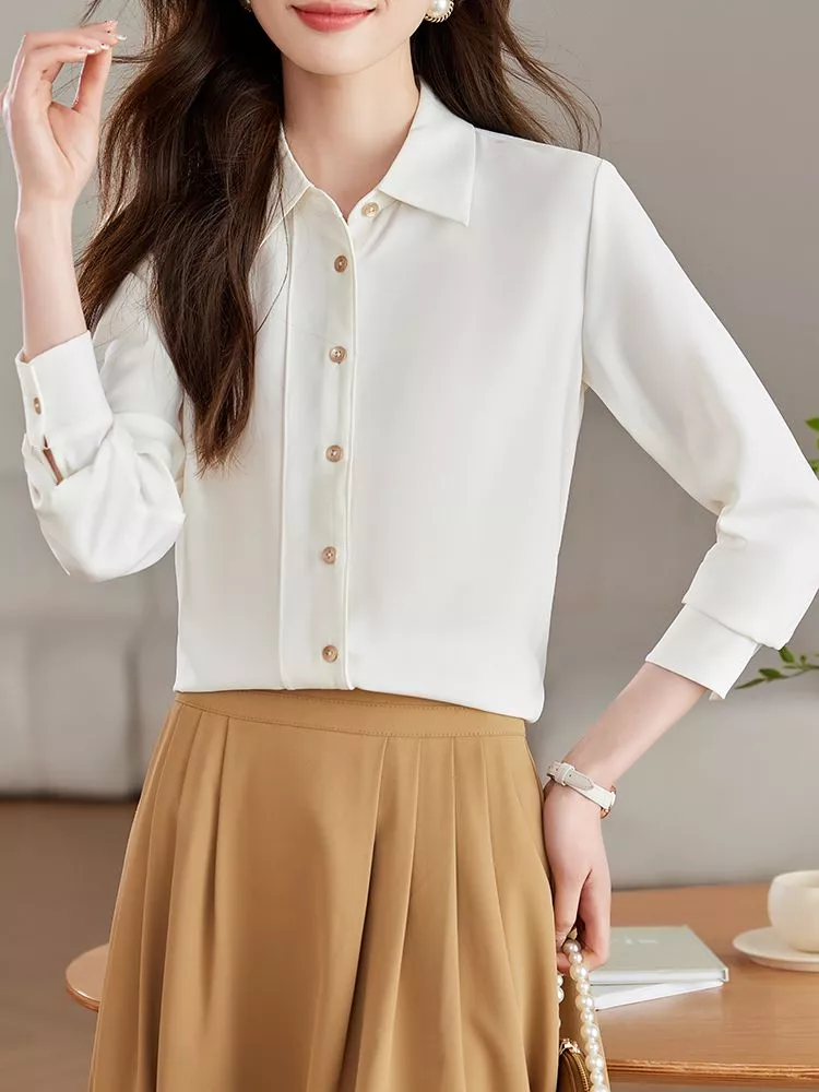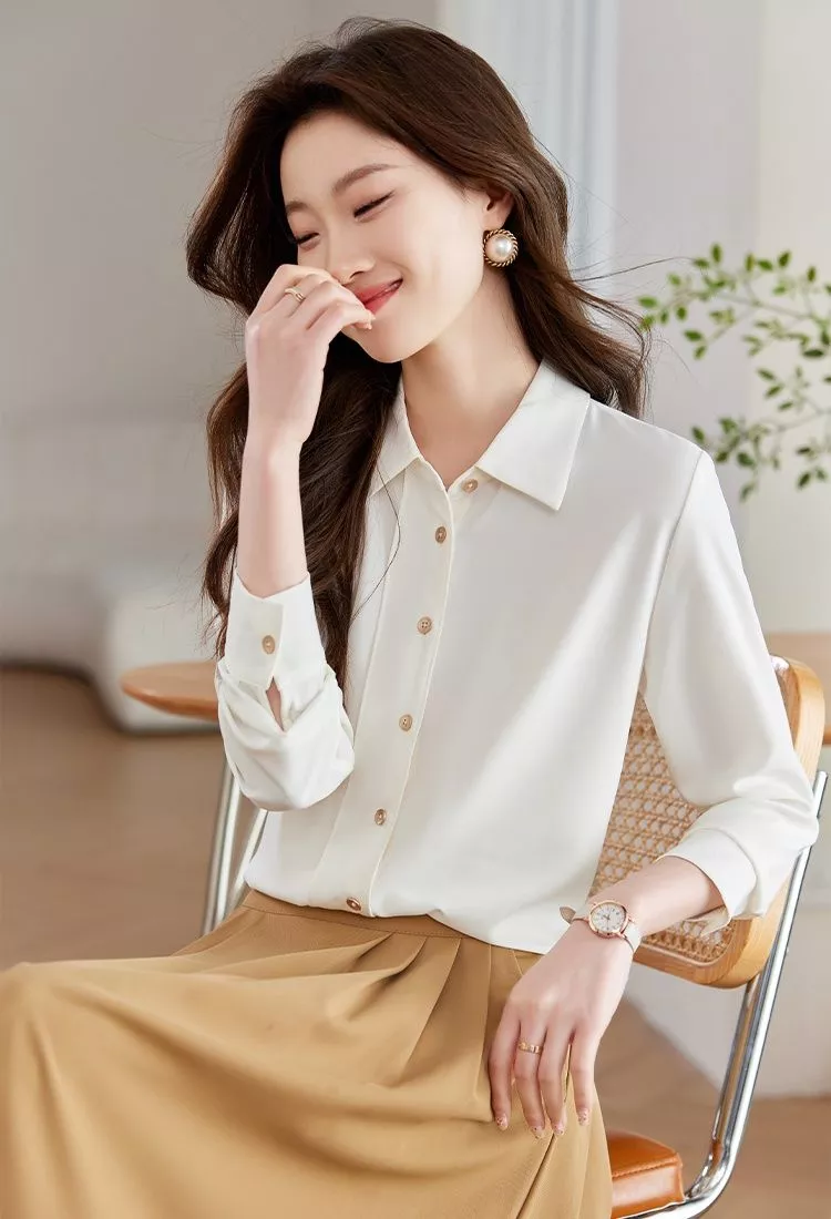 Camicia Maglia Blusa Donna Camicetta Bianco Raso Morbida Elegante 02819