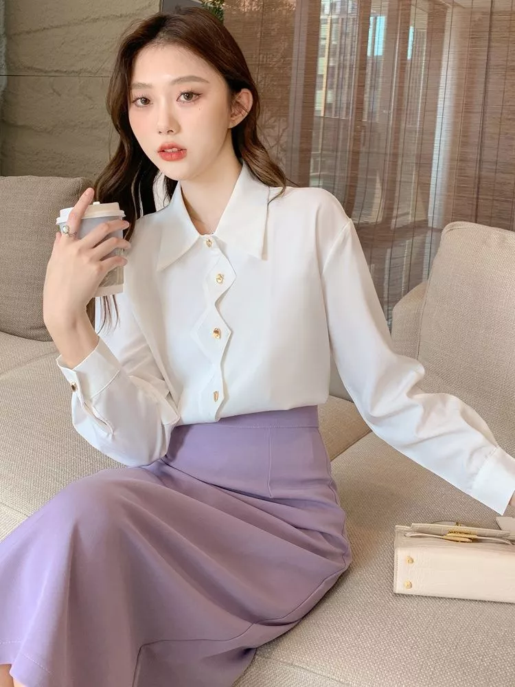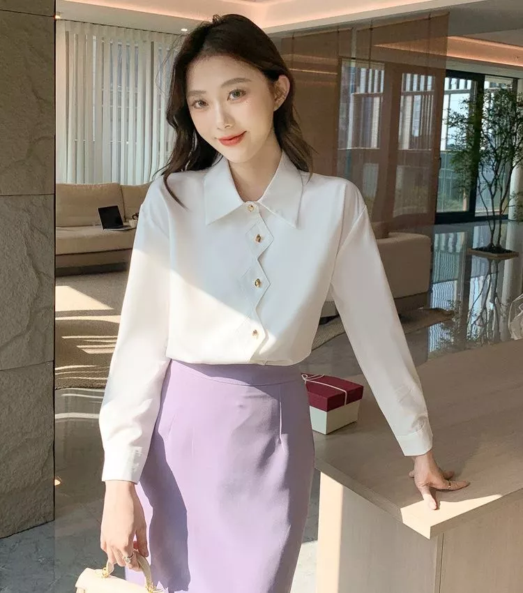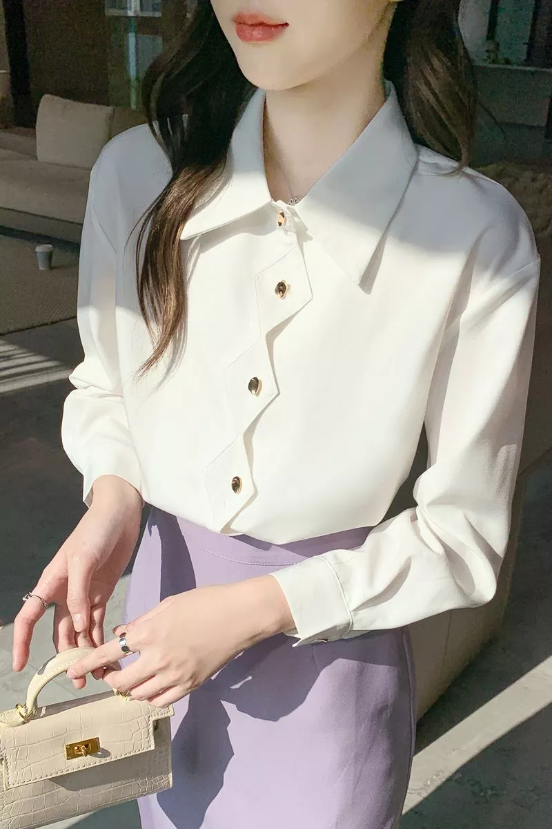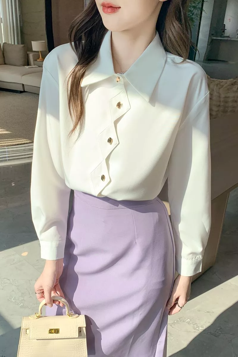 Camicia Maglia Blusa Donna Camicetta Bianco Satin Raso Morbida Elegante 01950