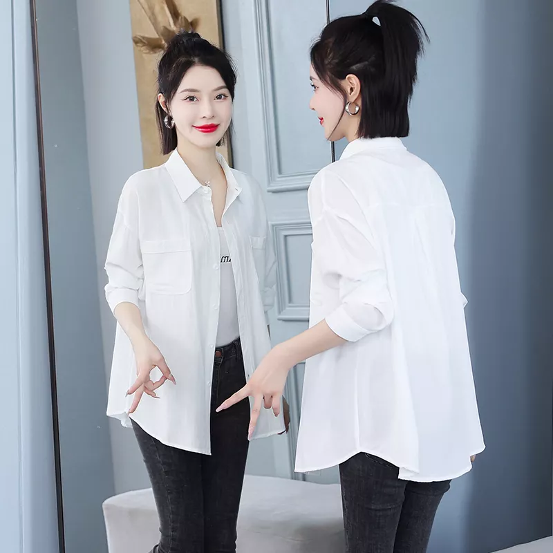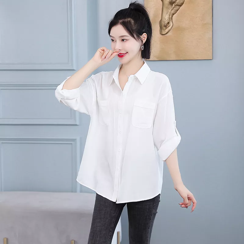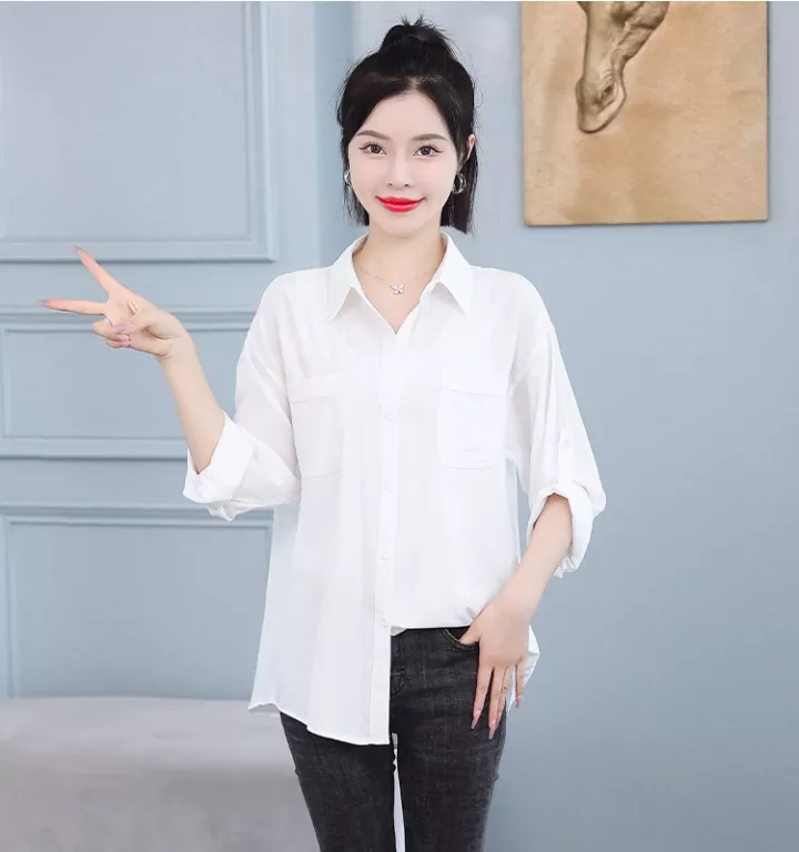 camicia maglia blusa donna camicetta maniche elegante bianco over slim 28608