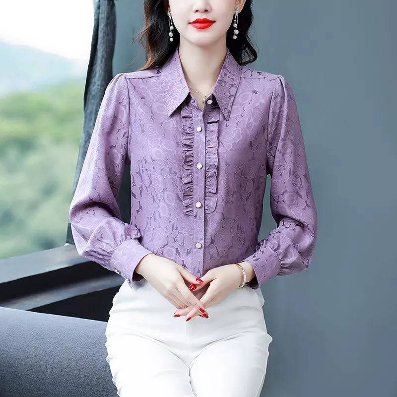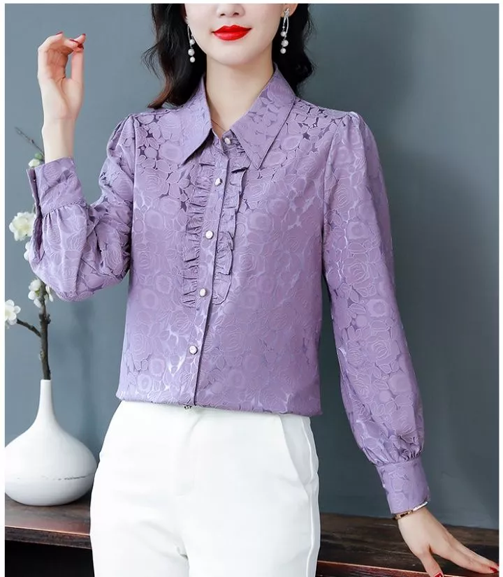 Camicia Maglia Blusa Donna Camicetta Raso Viola Chiffon Elegante 84705