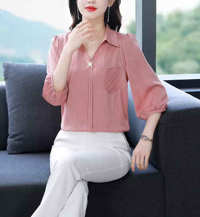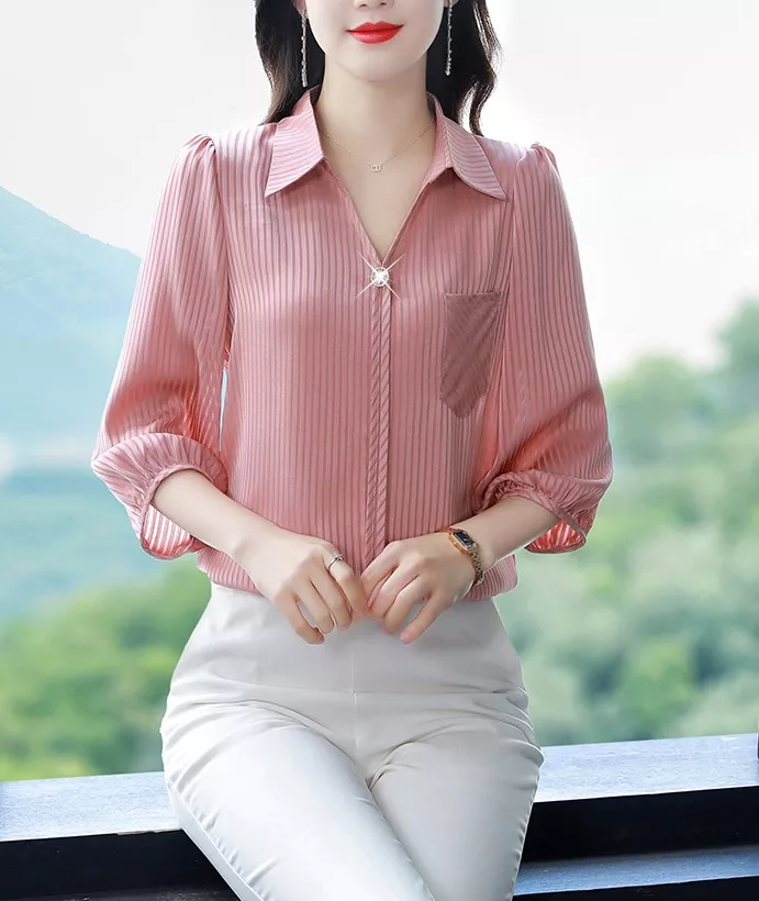 Camicia Maglia Blusa Donna Camicetta Rosa Raso Scollata Elegante 55457
