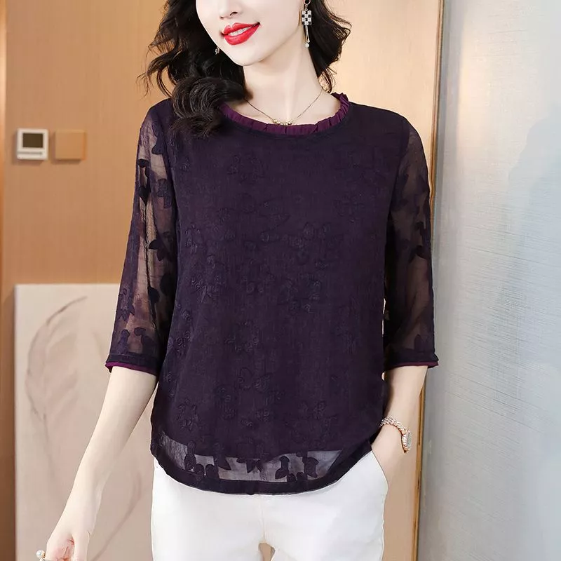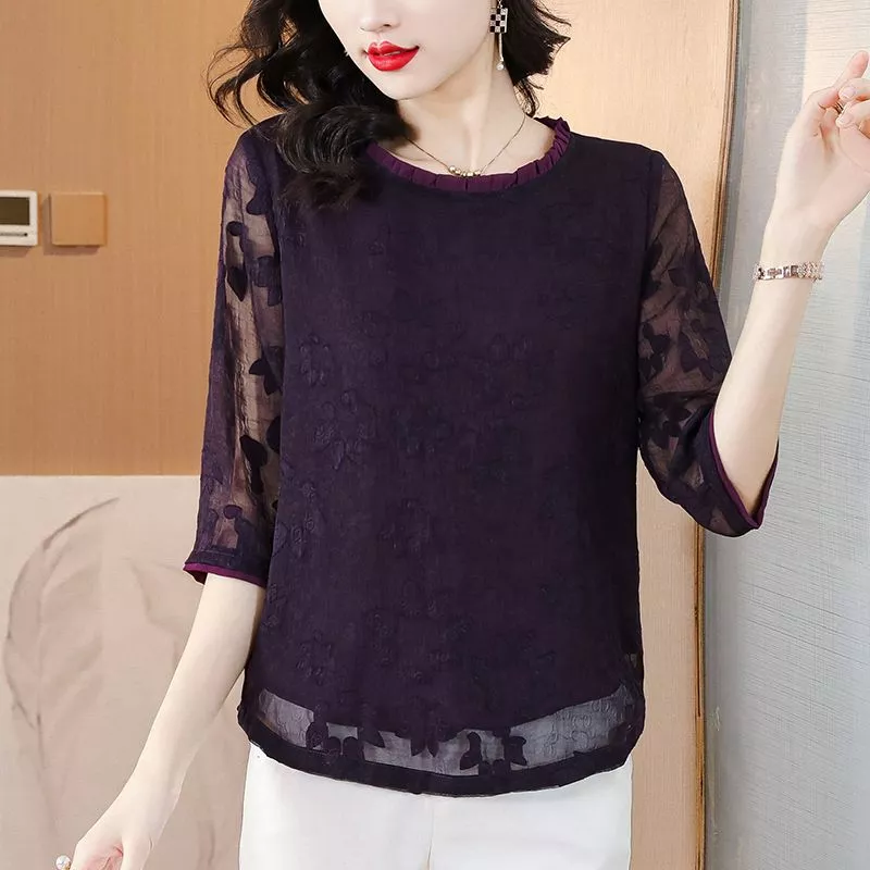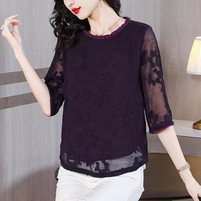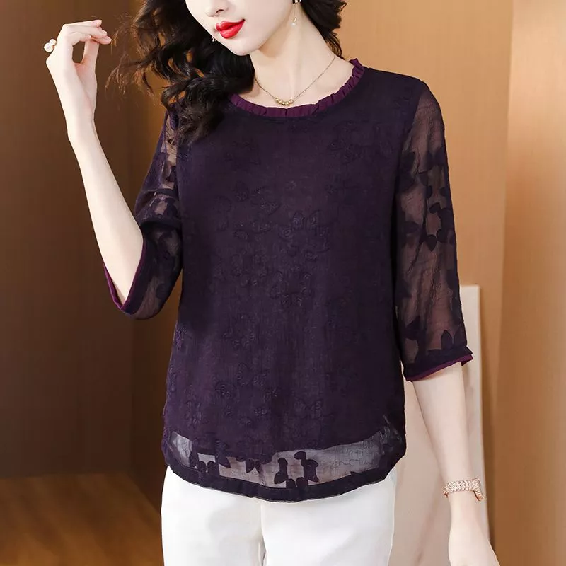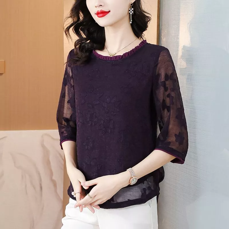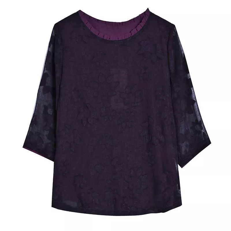 Camicia Maglia Blusa Donna Camicetta Viola Raso Morbida Elegante 03053