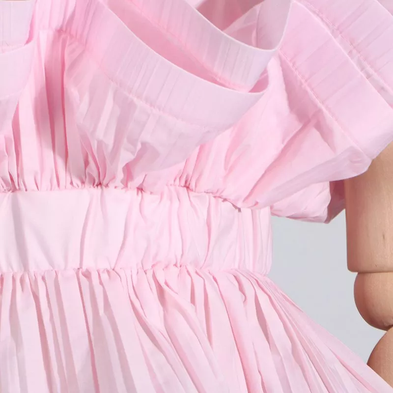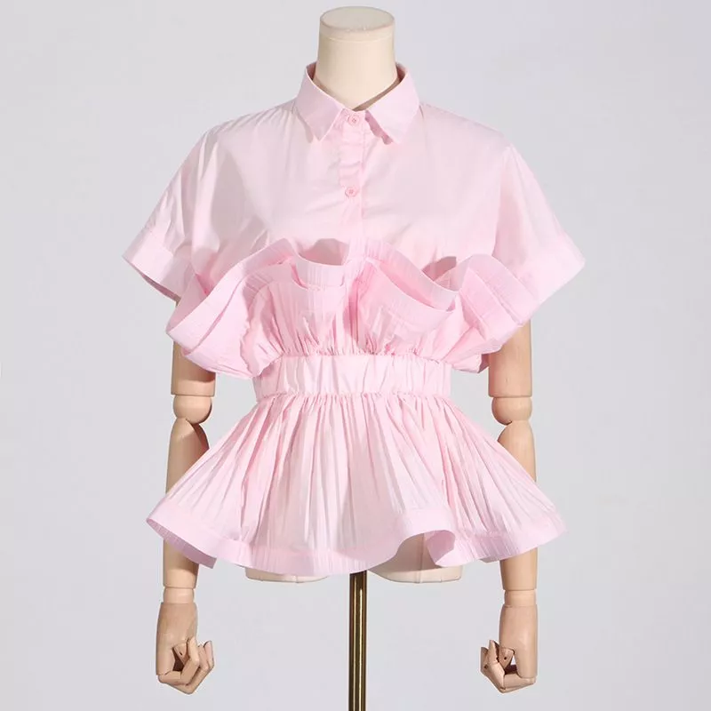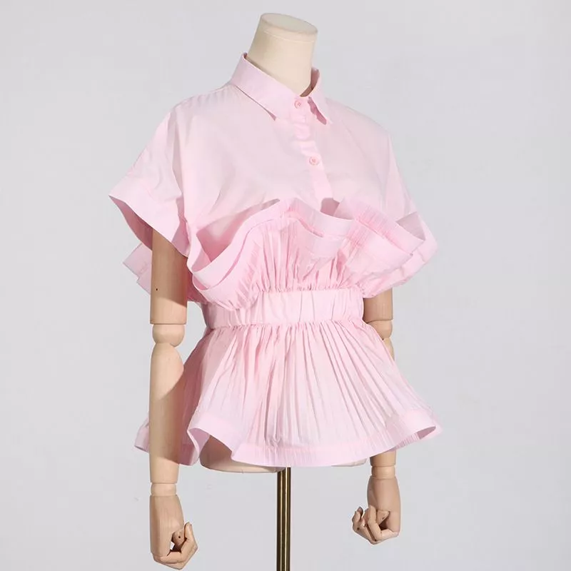 Camicia Rosa Con Volant E Vita Segnata Taglio Femminile Romantico CF56772
