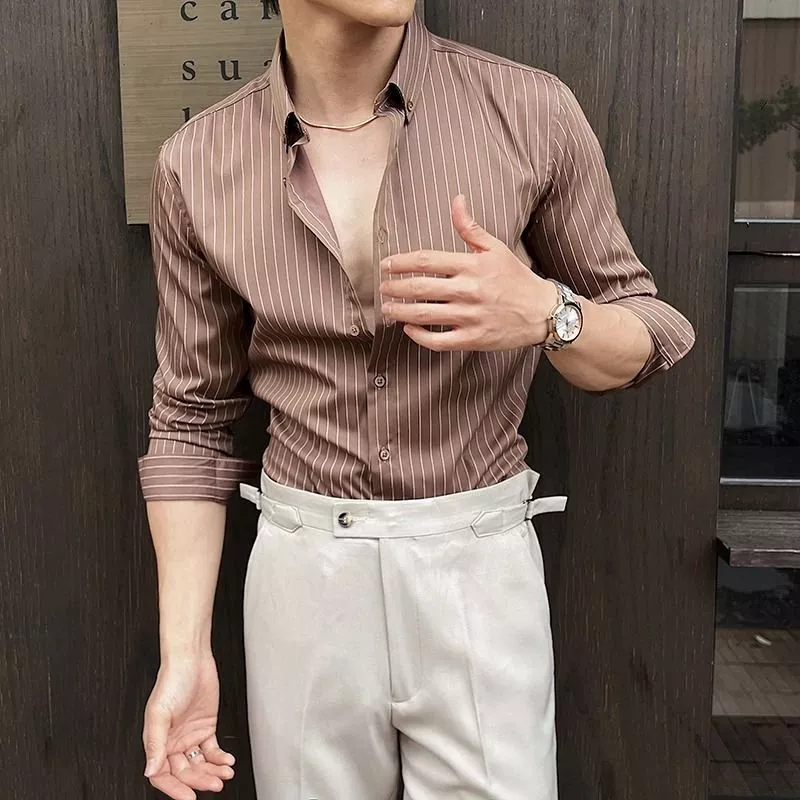 Camicia uomo dal taglio slim con micro rigatura verticale e linea raffinata, pensata per un look contemporaneo ed elegante. Il fit asciutto valorizza la silhouette mentre il disegno gessato slancia visivamente la figura, rendendo il modello ideale sia per outfit formali che per abbinamenti più ricercati.