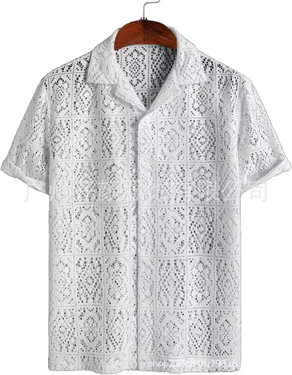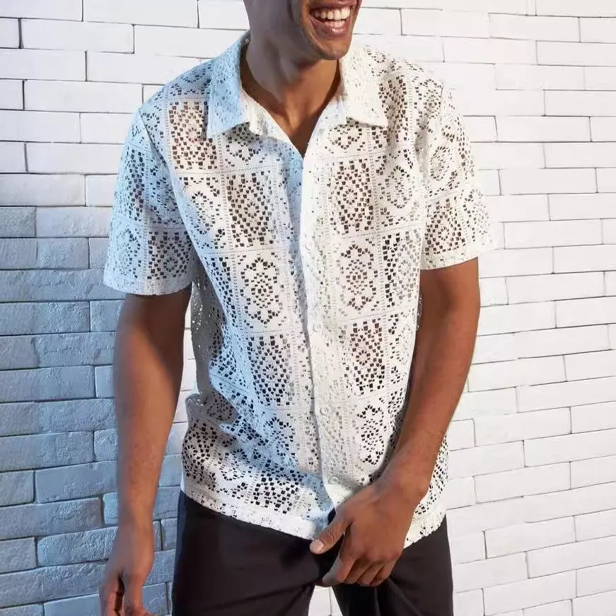 Camicia da uomo a manica corta realizzata in tessuto traforato, pensata per garantire freschezza e comfort anche nelle giornate più calde. La lavorazione a rete crea una texture leggera e traspirante, ideale per un utilizzo quotidiano.