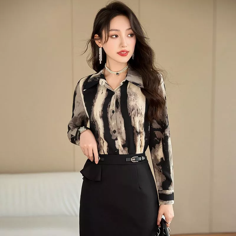 Camicia Donna Fantasia Elegante Classico Maniche Lunghe Slim Fit CF58141