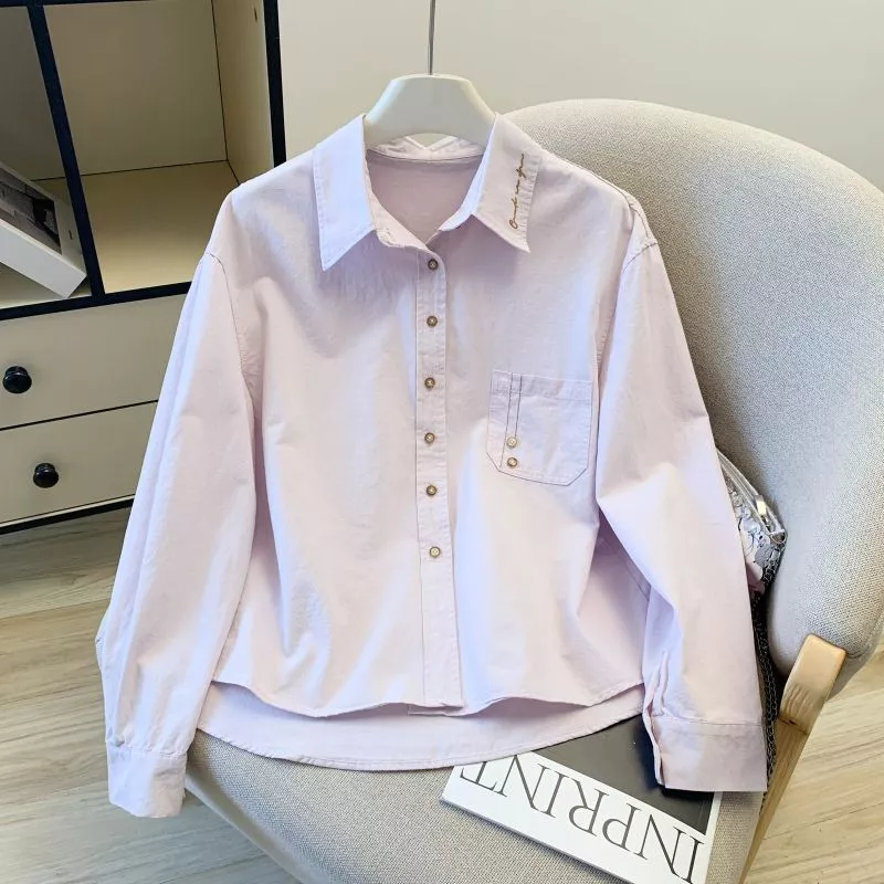 Camicia Donna Rosa Colletto Ricamato Tasca Frontale Casual Chic CF66515