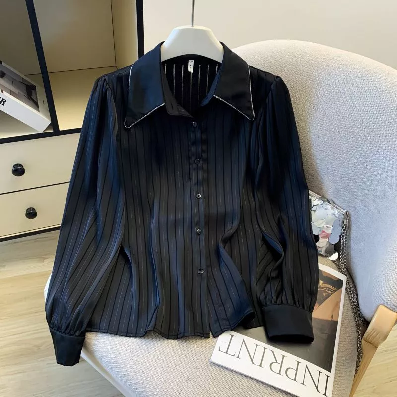 Camicia Donna Nera Satinata Elegante Maniche Lunghe Ufficio Chic CF66535