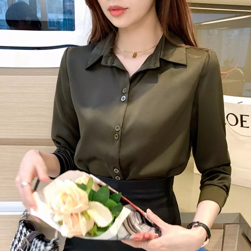 Camicia Donna Verde Oliva Morbida Satinata Elegante Ufficio CF67968