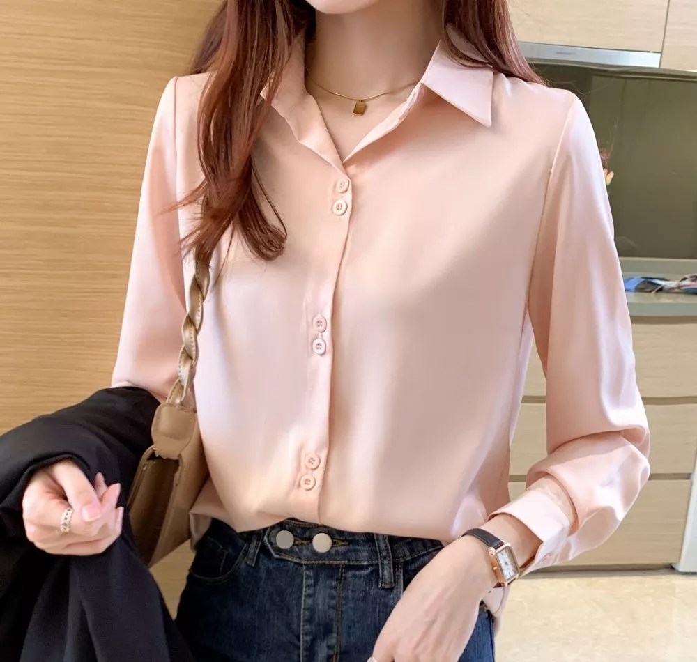 Camicia Donna Pesca Morbida Satinata Elegante Manica Lunga CF67968