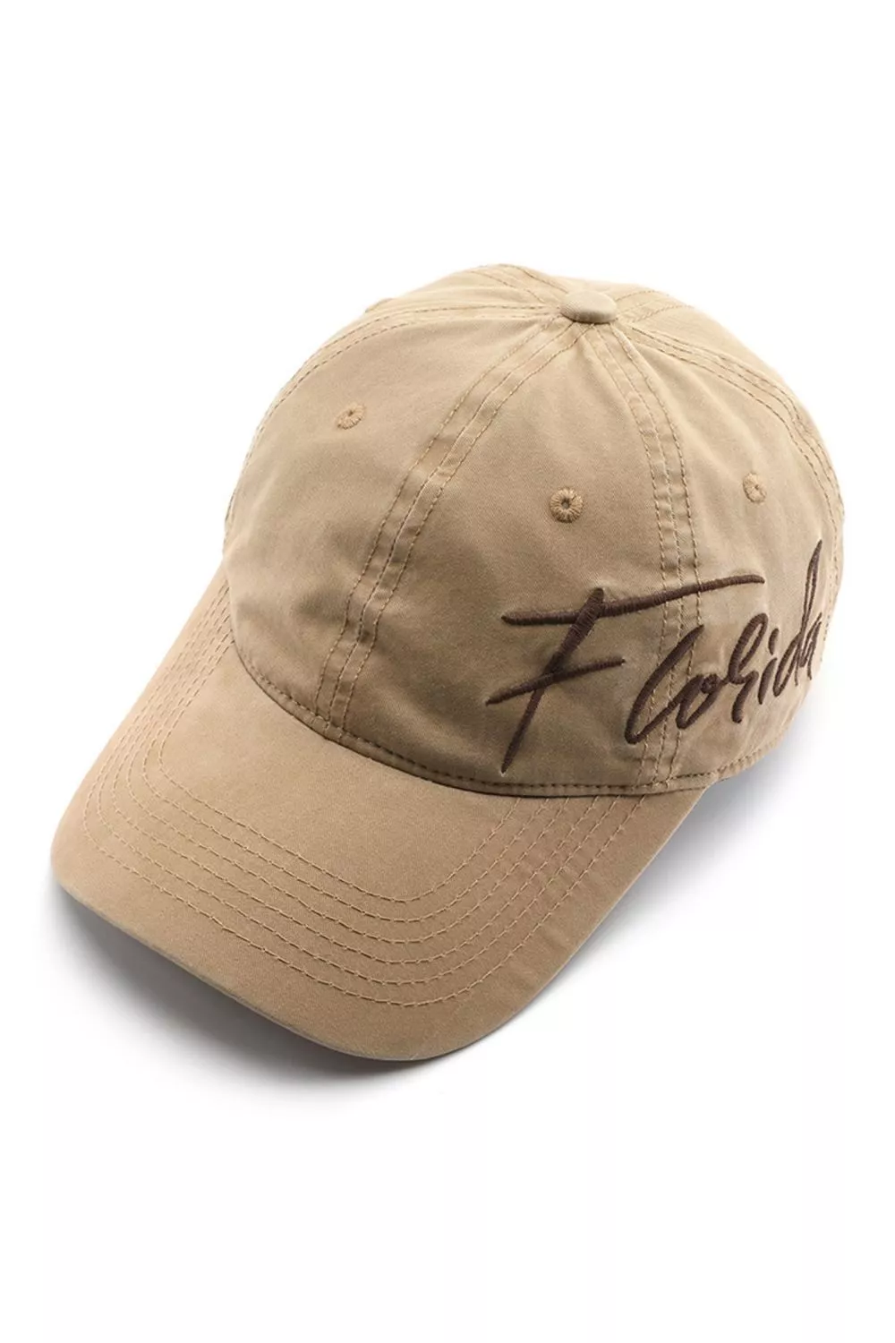 Cappellino da baseball color kaki con scritta Florida ricamata, perfetto per uno stile casual e pulito. Il design essenziale lo rende facile da abbinare a qualsiasi outfit quotidiano, mentre il dettaglio ricamato aggiunge un tocco distintivo senza risultare eccessivo. Ideale per un look semplice ma curato, è un accessorio versatile per ogni occasione informale.