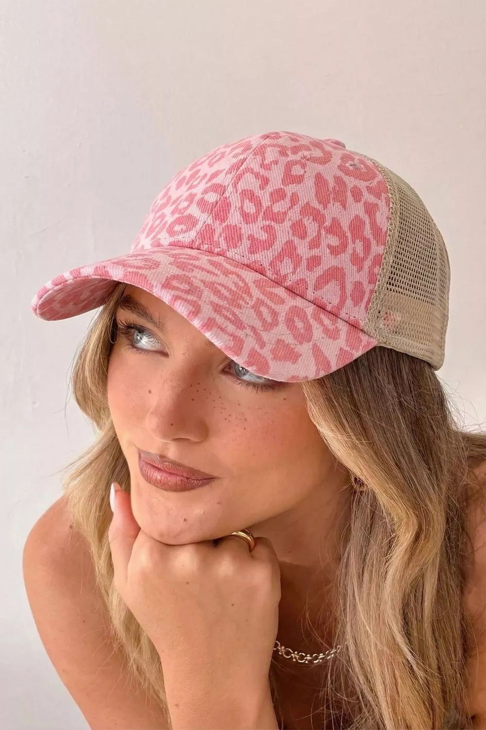 Cappellino Donna Rosa Leopardato Rete Trucker Regolabile Streetwear CF43741