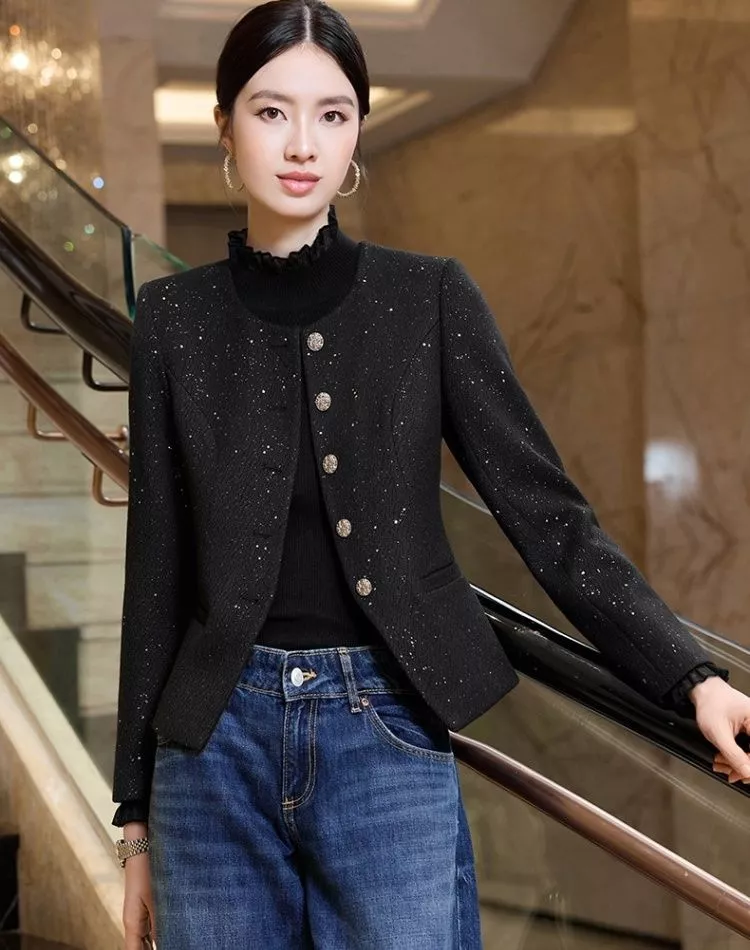 Giacca Elegante Nera Bottoni Gioiello Linea Sagomata Chic Donna Ufficio CF59565