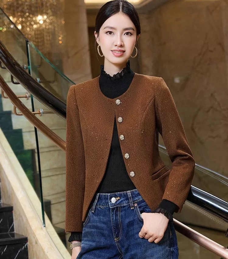 Giacca Cammello Elegante Bottoni Gioiello Look Sofisticato Donna CF59565