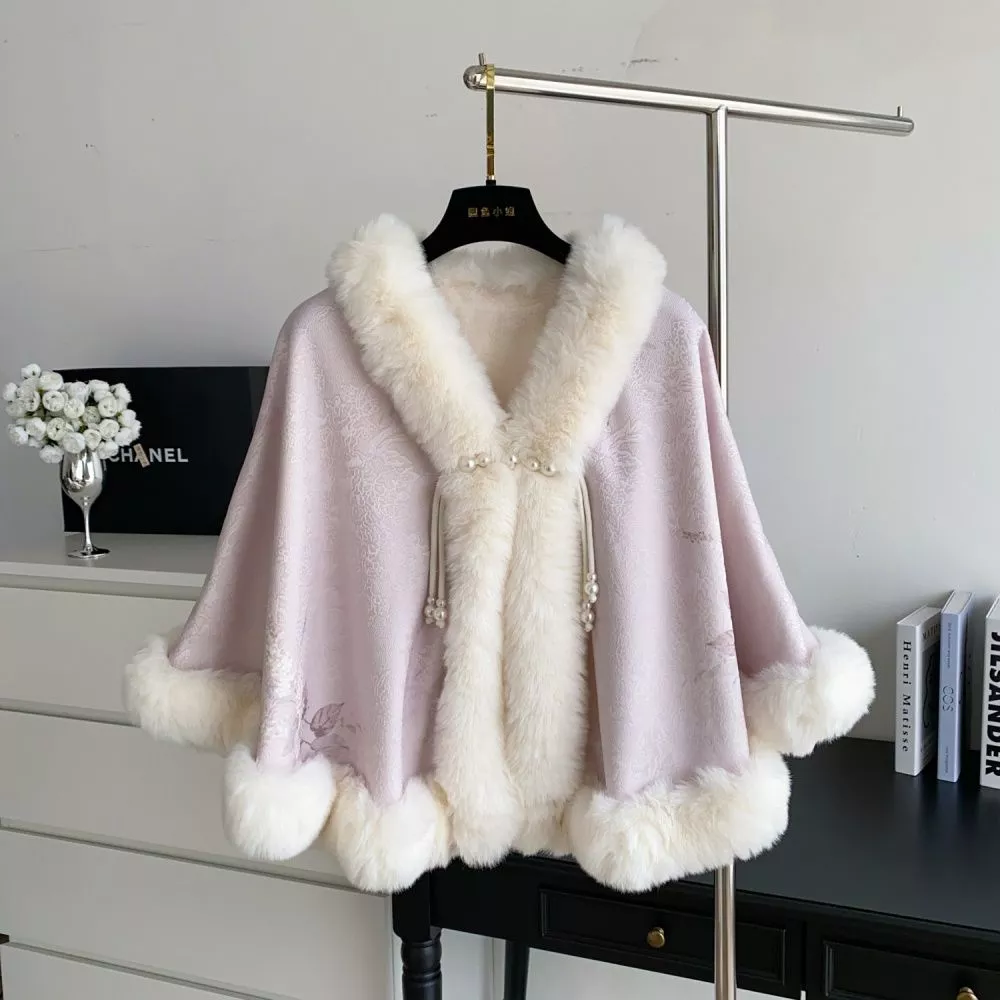 Cappa Invernale Elegante Con Pelliccia Sintetica Rosa Cipria Donna CF59822