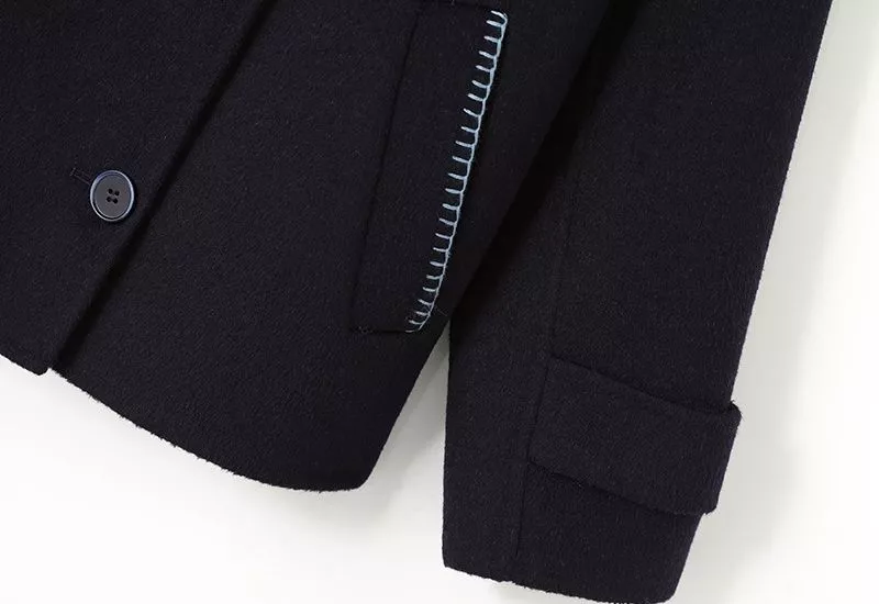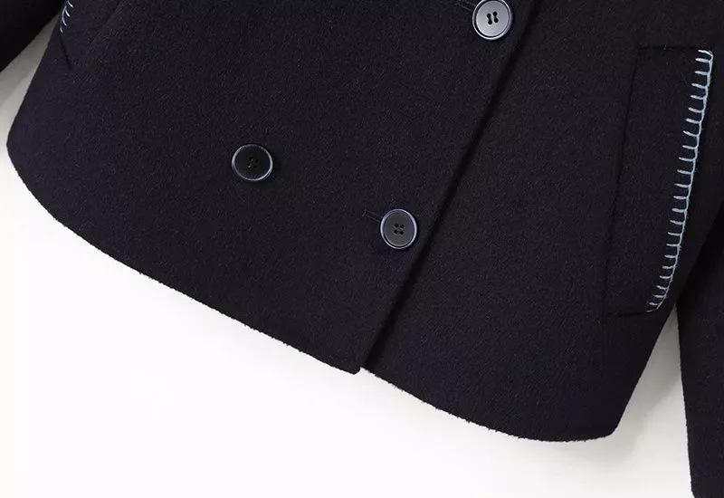 Cappotto Corto Doppiopetto Blu Navy Elegante Linea Morbida Outfit Donna CF59844