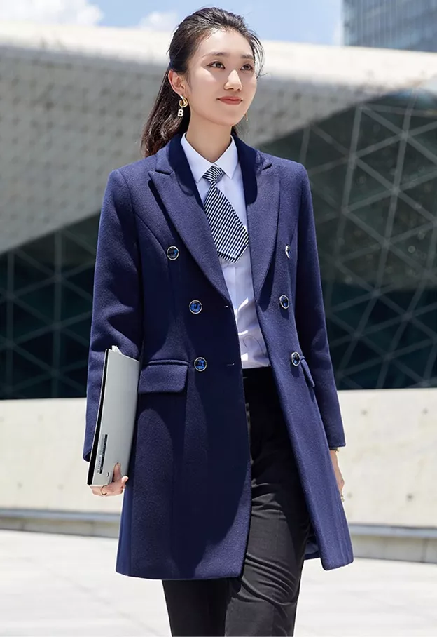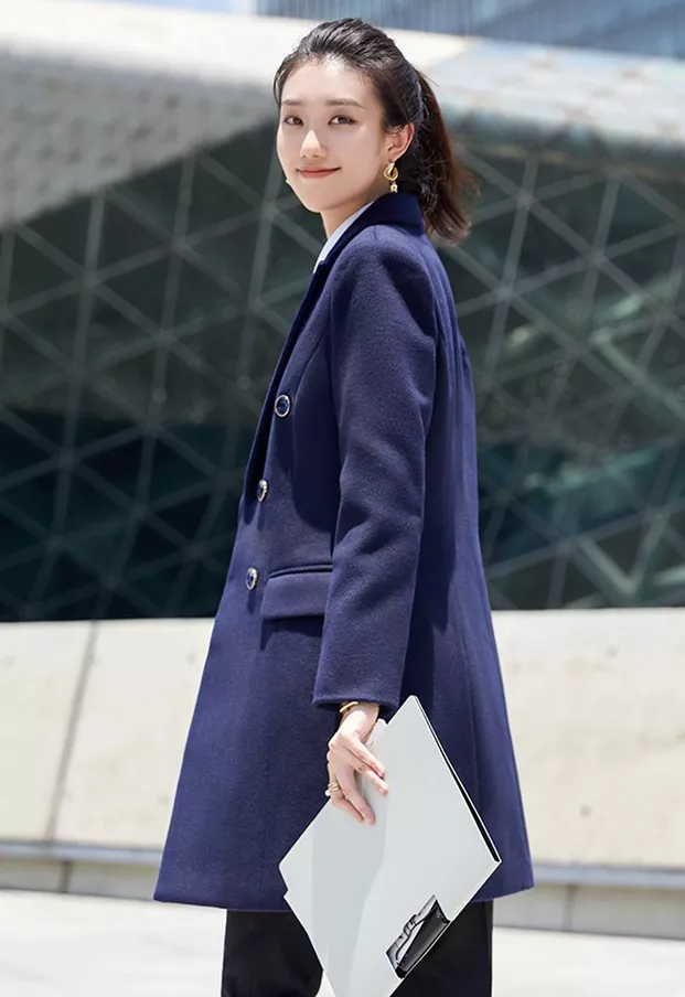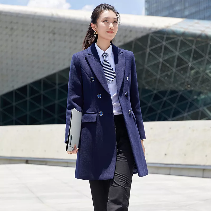 Cappotto Donna Giacca Lungo Doppiopetto Blu Navy Caldo Elegante Slim Fit 38234