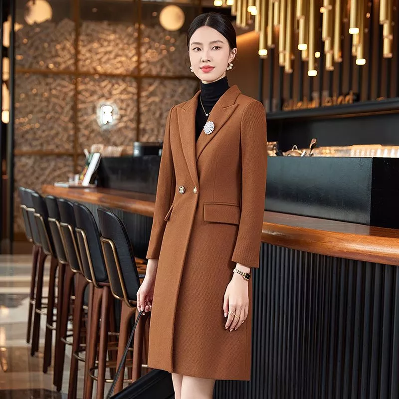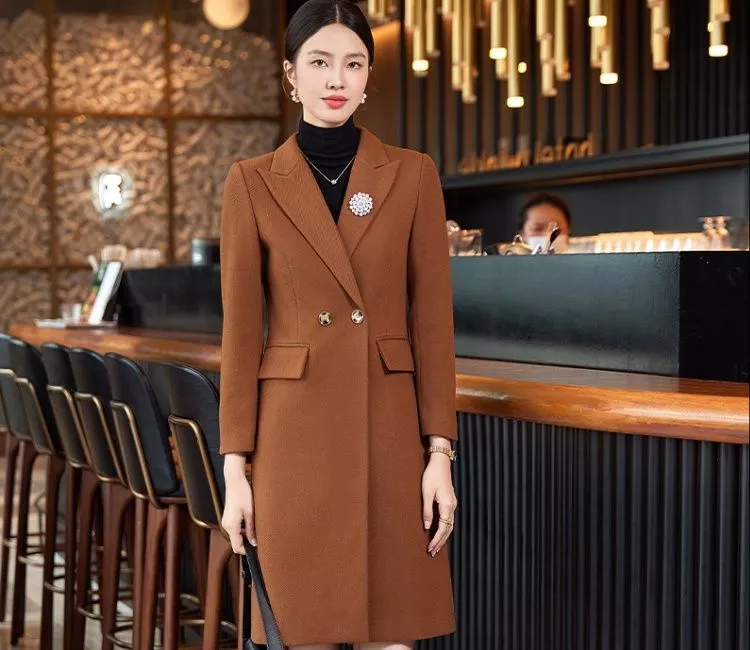 Cappotto donna elegante dal design pulito e raffinato, pensato per completare outfit da ufficio e occasioni formali. Il taglio sartoriale e la linea doppiopetto con bottoni frontali valorizzano la figura con un'estetica ordinata e professionale. La lunghezza al ginocchio lo rende ideale da indossare su abiti, completi o look business, mantenendo uno stile sobrio e femminile.
