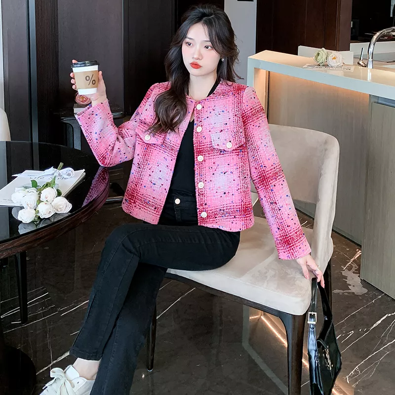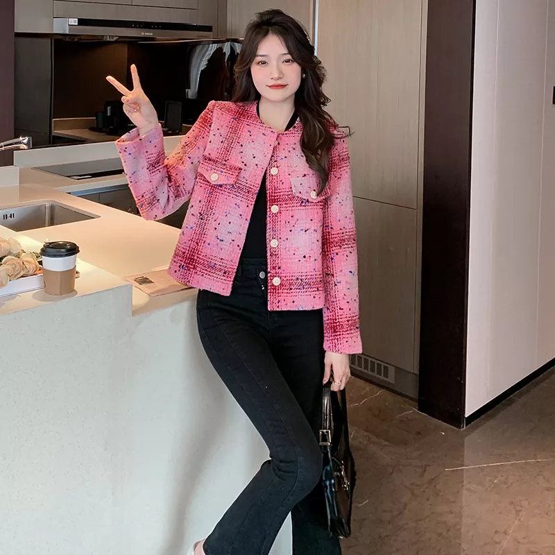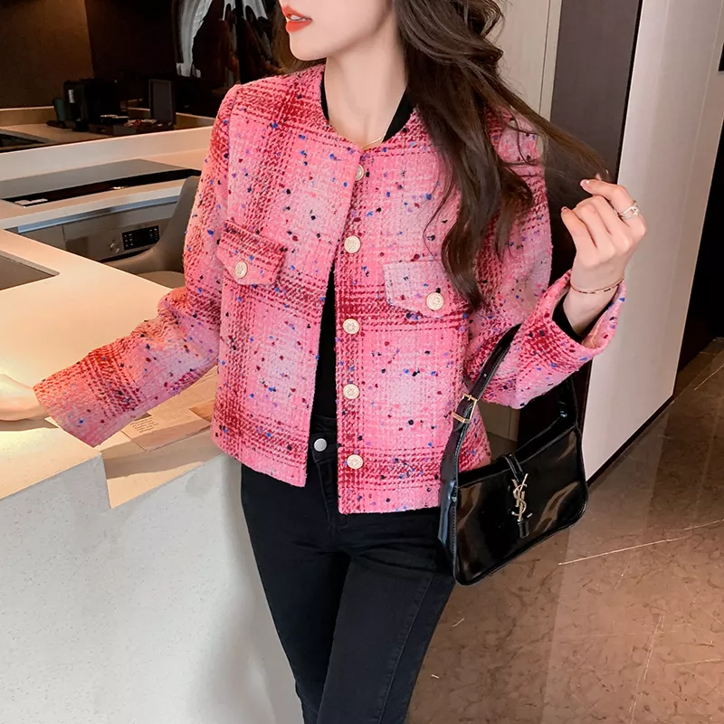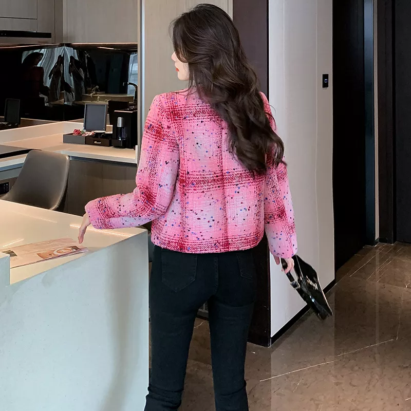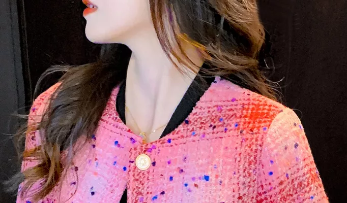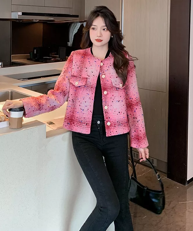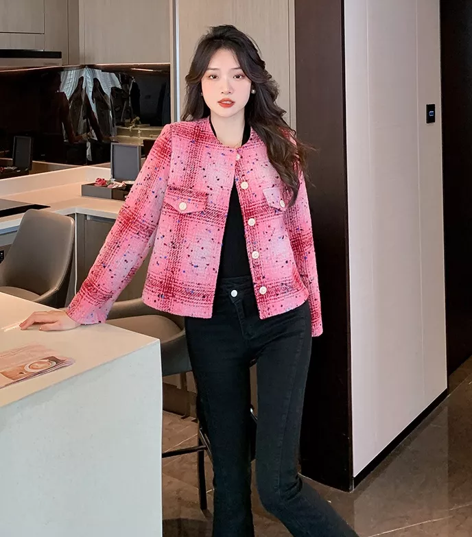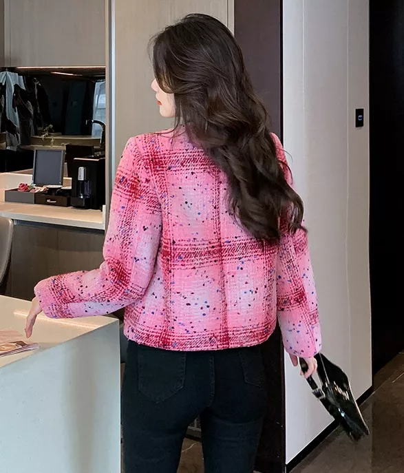 Cappotto Giacca Donna Morbido Rosa Slim Bottoni Tweed Elegante 42881