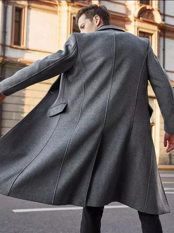 cappotto lungo elegante sportivo moda uomo slim stretto caldo grigio chiaro 1000