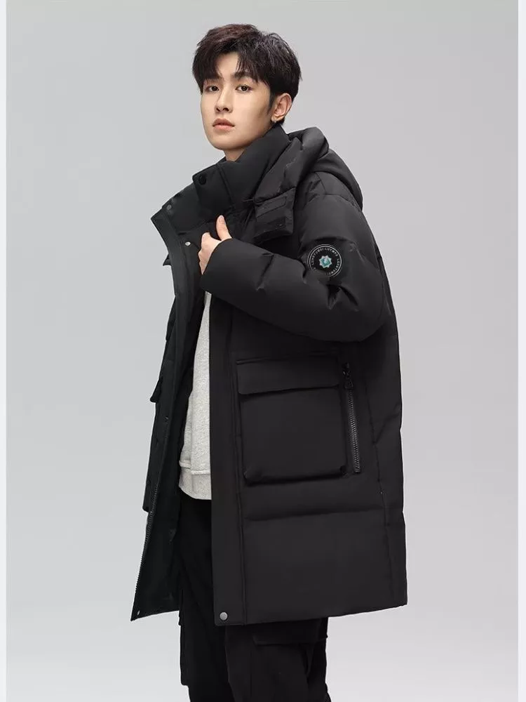 Cappotto piumino da uomo lungo e imbottito, pensato per affrontare al meglio l’inverno. Realizzato in tessuto tecnico resistente, garantisce calore e comfort grazie all’imbottitura spessa e al cappuccio protettivo. Dotato di tasche ampie e pratiche, è ideale per la città e il tempo libero, perfetto per uno stile casual e moderno. Disponibile in tre varianti colore – nero, beige e cachi – è il capo essenziale per la stagione fredda.