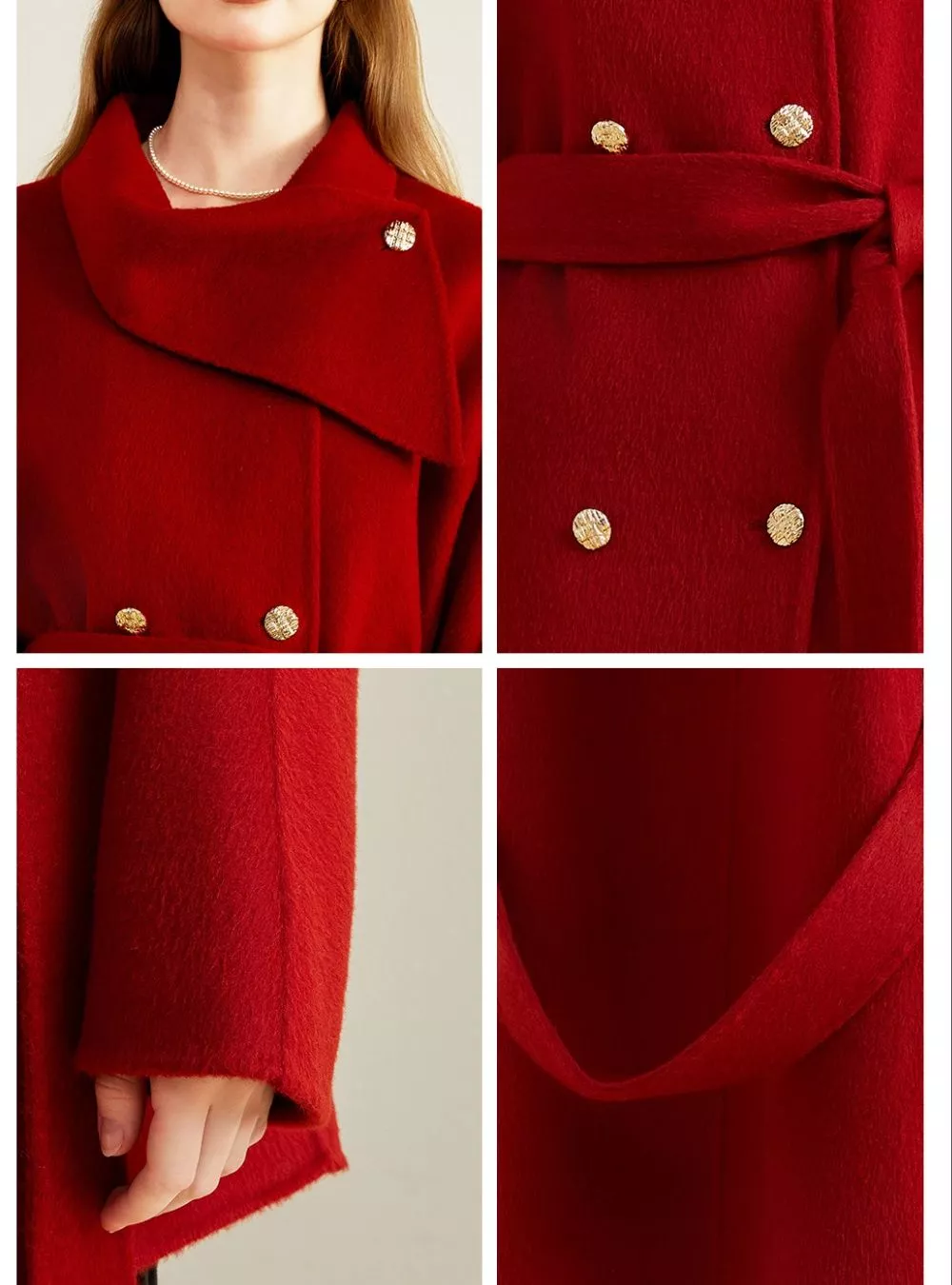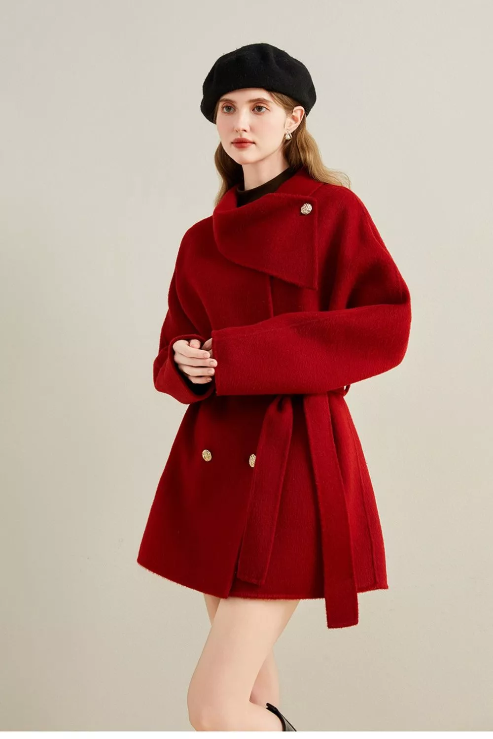 : Cappotto Rosso Corto In Lana Sintetica Con Collo Ampio E Bottoni Oro CF56930