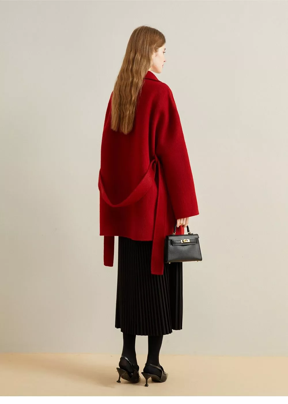 Il taglio leggermente svasato e il collo asimmetrico donano un look moderno e sofisticato, perfetto per i mesi freddi.