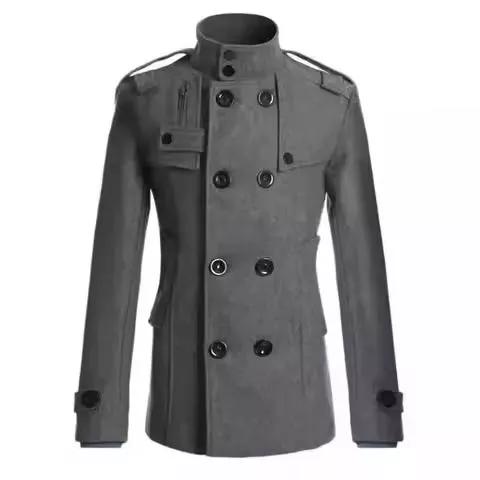 Cappotto corto da uomo slim con doppio petto e linea pulita. Taglio asciutto che valorizza la figura, bottoni doppi dal carattere classico e finiture essenziali per un look elegante-urbano. Tessuto medio-leggero confortevole nelle mezze stagioni; perfetto con camicia e chino per l'ufficio o con dolcevita e jeans nel tempo libero.