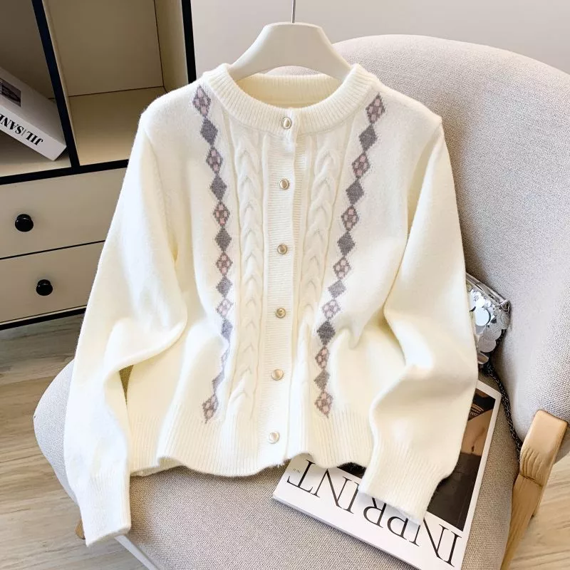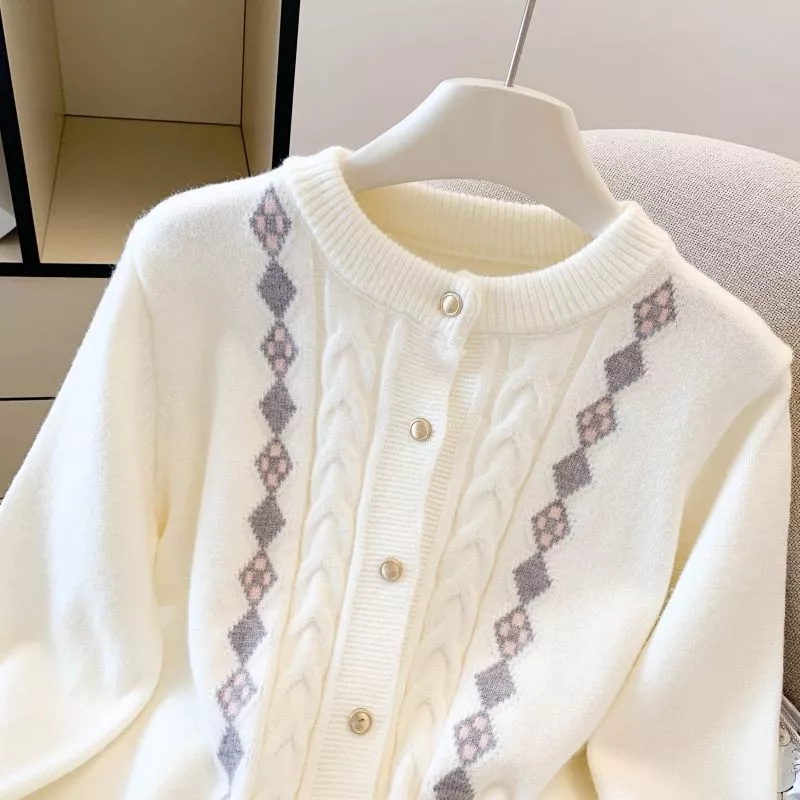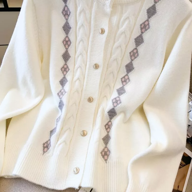 Cardigan in maglia jacquard dal design trapuntato, morbido e confortevole al tatto.