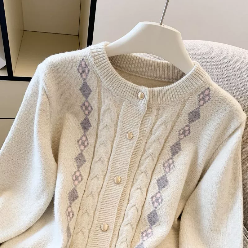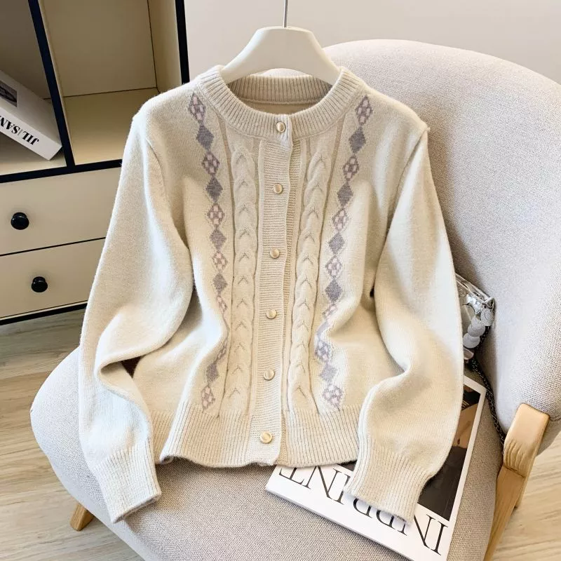 Cardigan Cachi Trapuntato In Maglia Jacquard Con Bottoni Elegante CF56404