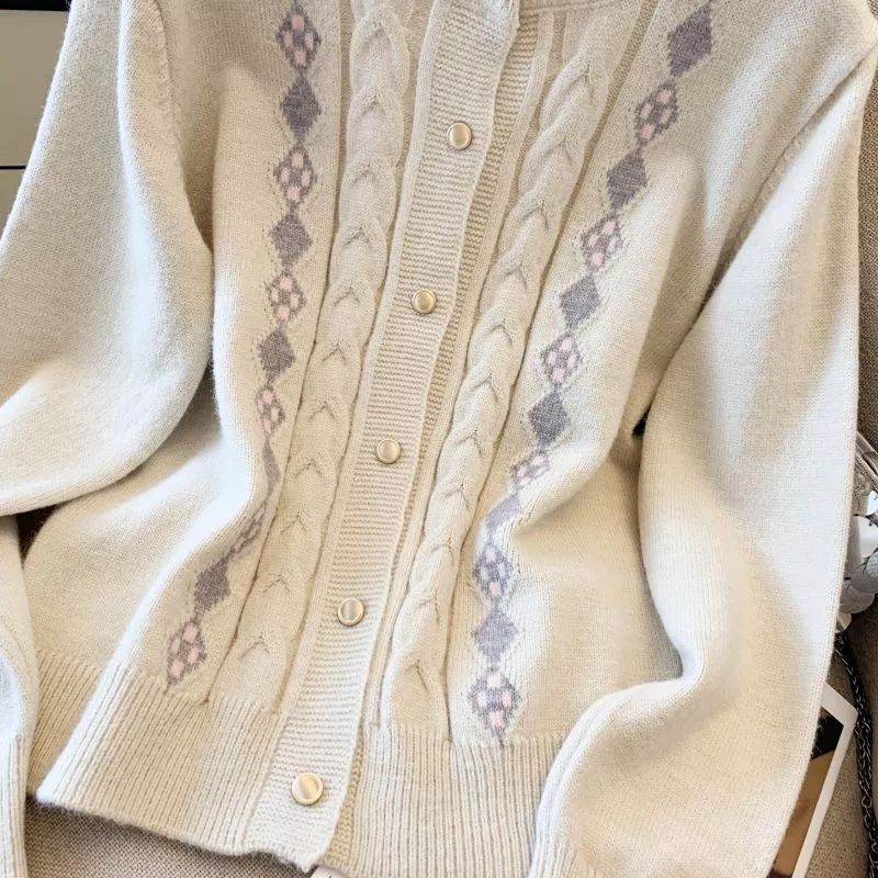 Cardigan in maglia jacquard dal design trapuntato, morbido e confortevole al tatto.
