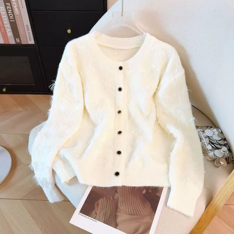 Cardigan donna dallo stile elegante e contemporaneo, caratterizzato da una lavorazione a motivo ondulato arricchita da filato effetto piuma che dona movimento e morbidezza al capo. La linea leggermente ampia garantisce una vestibilità confortevole, mentre il collo tondo e la chiusura frontale con bottoni completano il design in modo equilibrato. Un cardigan raffinato ma versatile, ideale per valorizzare look quotidiani curati, outfit da ufficio informali o abbinamenti più eleganti sopra top e vestiti.