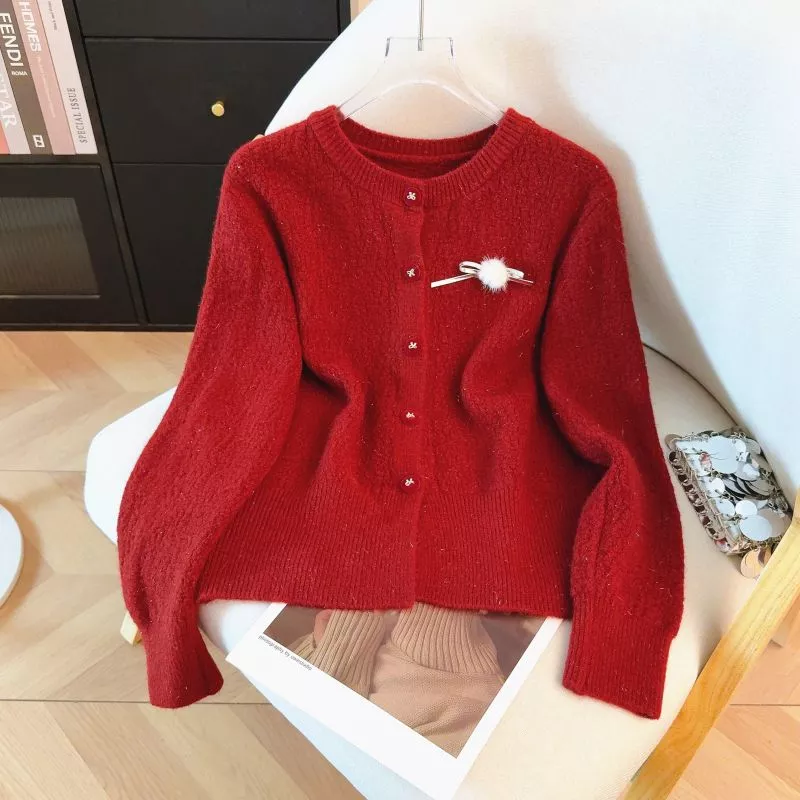 Cardigan Donna Rosso Borgogna Morbido Con Bottoni Decorativi Elegante CF64771