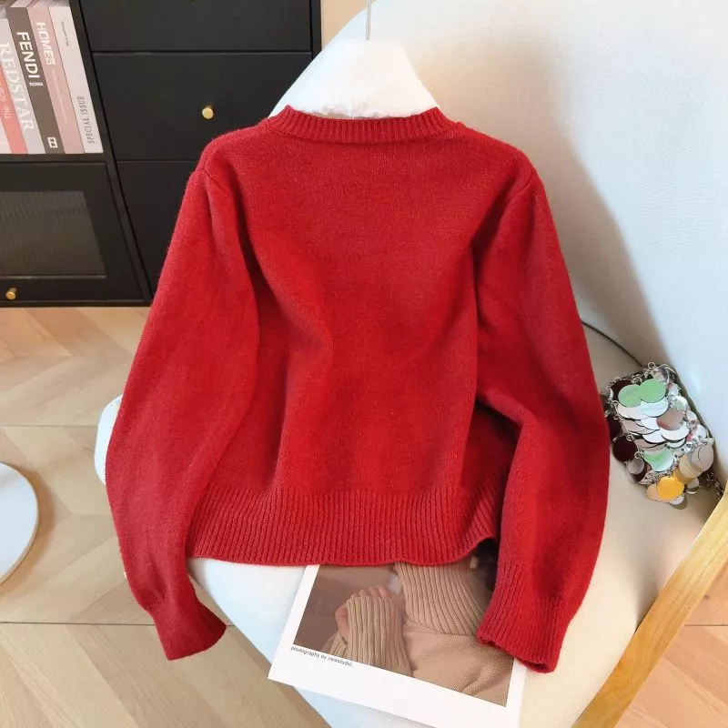 Cardigan Donna Rosso Collo In Eco Pelliccia Fiocco Leopardato E Bottoni CF64763
