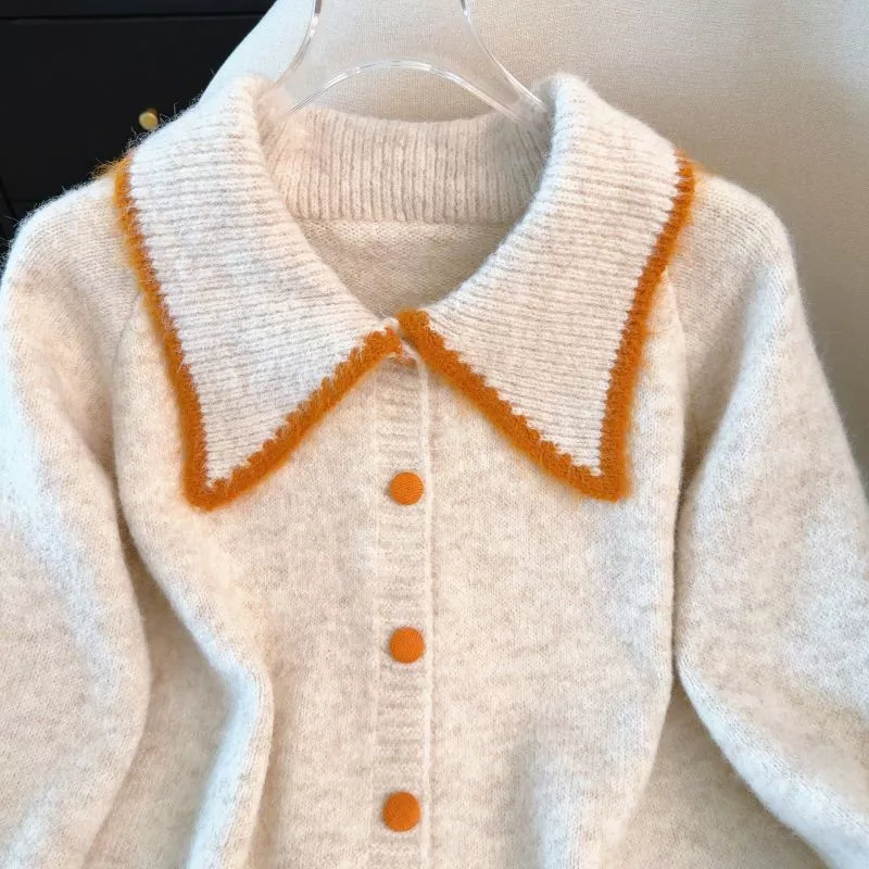 Cardigan morbido e avvolgente caratterizzato da colletto maxi e bottoni frontali a contrasto. Il design caldo e accogliente lo rende perfetto per outfit casual chic e quotidiani.