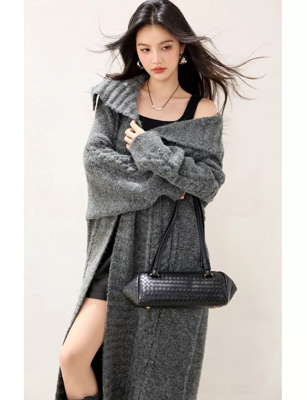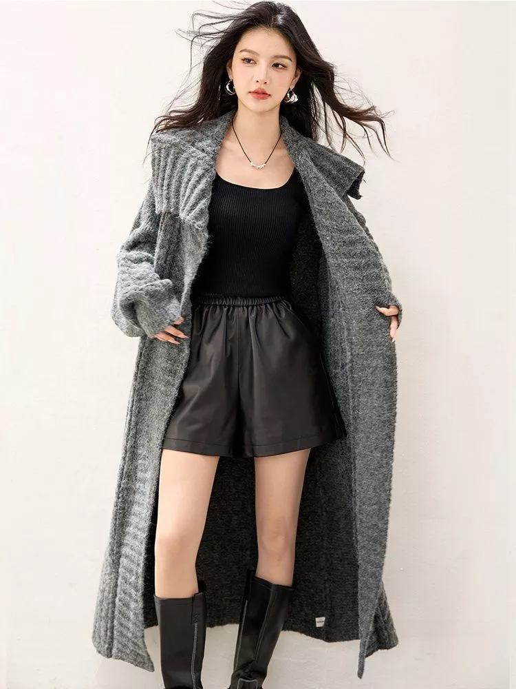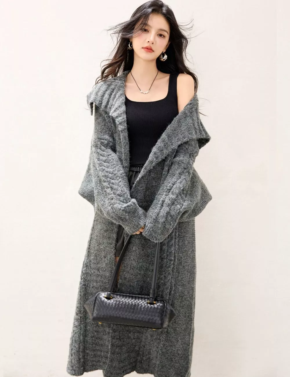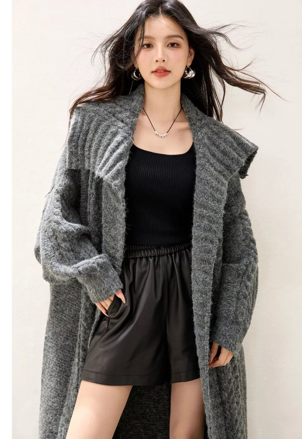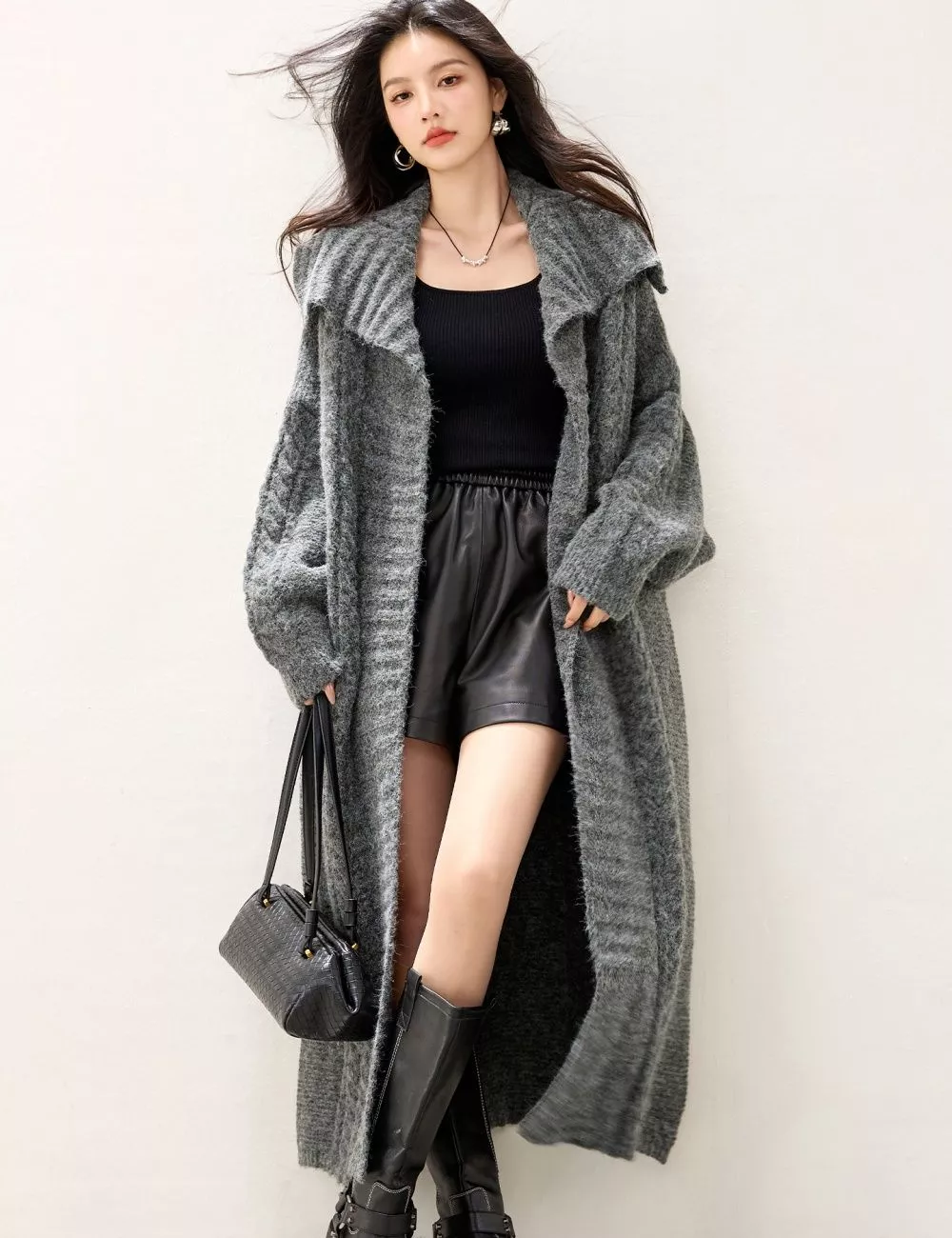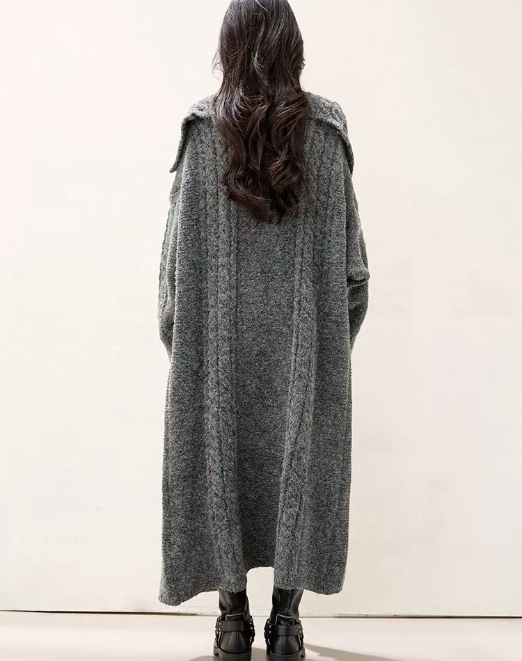Cardigan Lungo Grigio Maglia Spessa Morbido E Caldo Cappotto Invernale CF55975