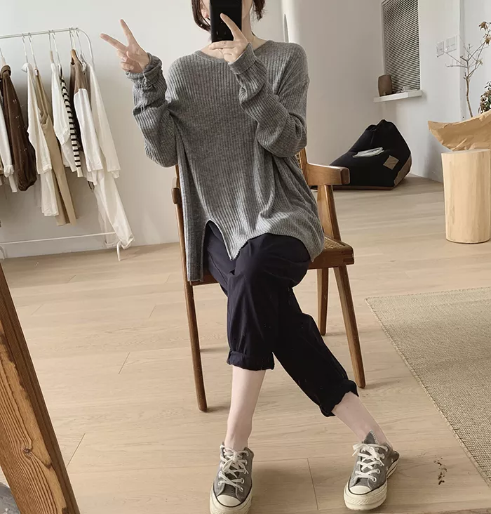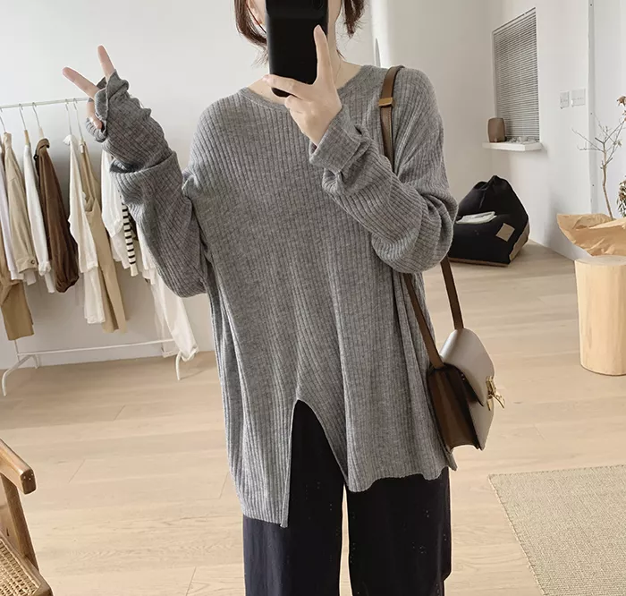 Cardigan Maglia Top Pullover Corto Donna Morbido Maglione Grigio Coste 36761