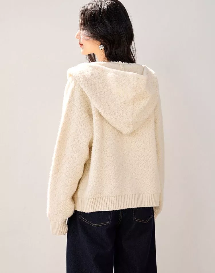 Questo cardigan con cappuccio unisce morbidezza e stile in un capo versatile perfetto per creare look casual ma curati. La texture soffice dona una sensazione avvolgente, mentre la zip frontale permette di indossarlo facilmente sopra top e maglie leggere. La linea leggermente rilassata lo rende ideale per il tempo libero, le giornate più fresche e gli outfit quotidiani che richiedono comfort senza rinunciare a un tocco elegante. Disponibile in due tonalità raffinate, si abbina con facilità a jeans, gonne o pantaloni dritti, adattandosi a diversi stili personali.