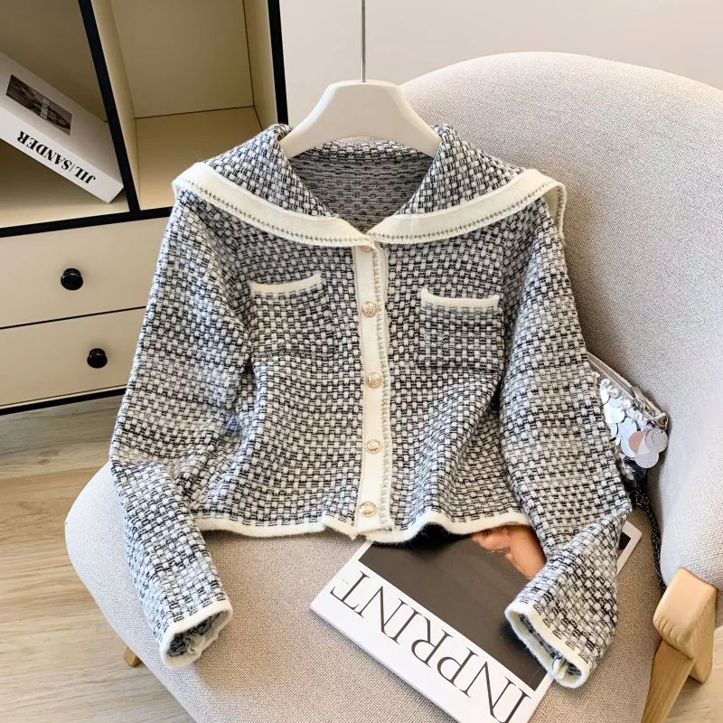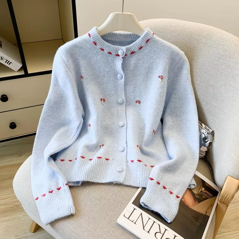 Cardigan Donna Azzurro Ricamato Morbido Caldo Stile Retro Elegante CF58176