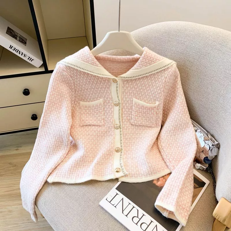 Cardigan Donna Rosa Con Colletto A Contrasto Bottoni Elegante Morbido CF58293