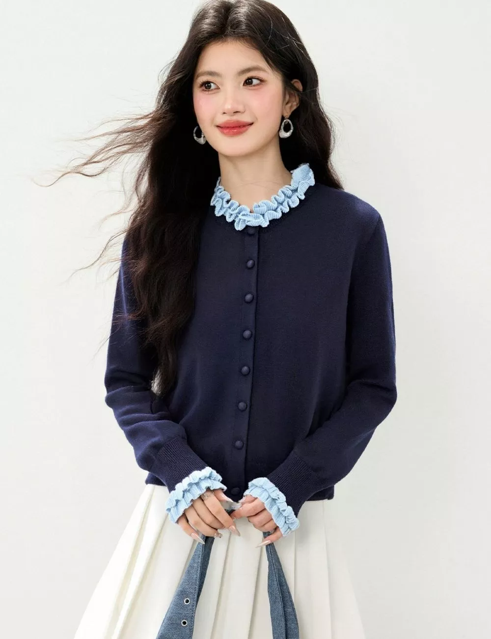 Cardigan Donna Blu Navy Con Motivi Ricamati Maniche Morbida CF62071