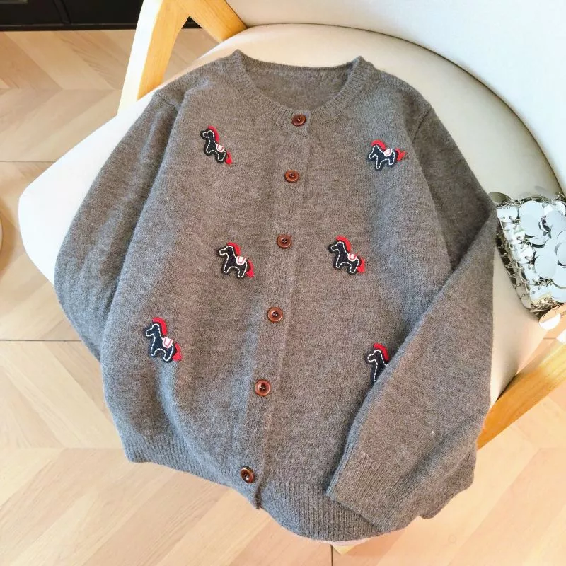 Cardigan Donna Raffinato In Maglia Con Ricami E Bottoni Frontali Grigio CF66077