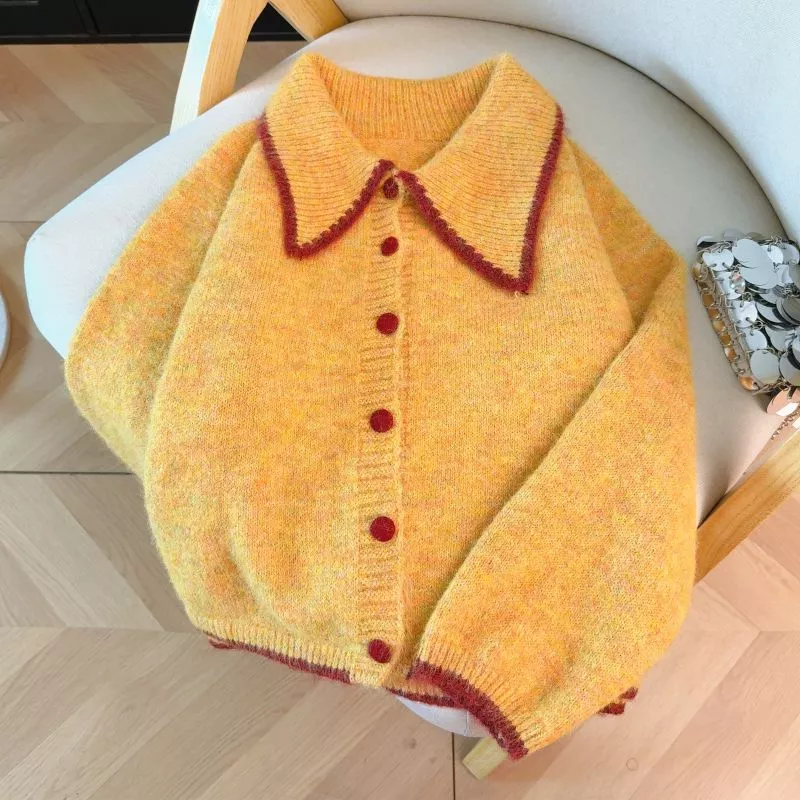 Cardigan Donna Morbido Con Colletto Maxi Maglione Chic Giallo CF66143