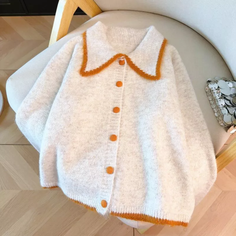 Cardigan Elegante Donna Con Colletto Maxi Maglione Beige Chic CF66143